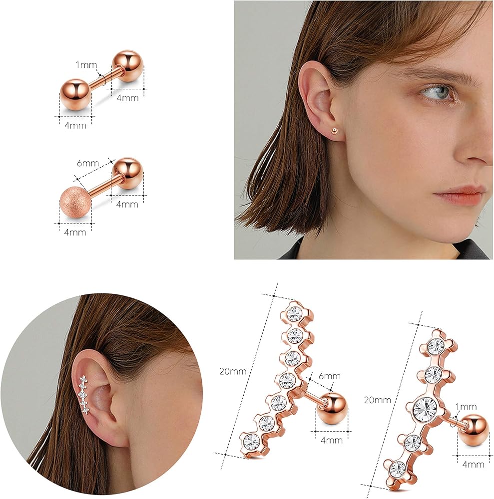 مواد عالية الجودة - ثقب هيليكس تراغوس مصنوع من الفولاذ المقاوم للصدأ الجراحي سعة 316L، سطح مصقول للغاية، آمن ومتين، خالي من الرصاص والنيكل. الاحتفاظ بالألوان مع اللوحة الكهربائية الدقيقة، وعمر خدمة أطول. مرصع بالزركون المكعب الفاخر والأوبال، أكثر تألقًا وجاذبية للأنظار. تصميم لولبي كلاسيكي، سهل الفك والتركيب.