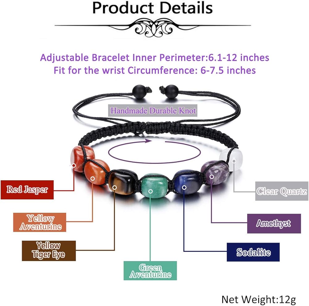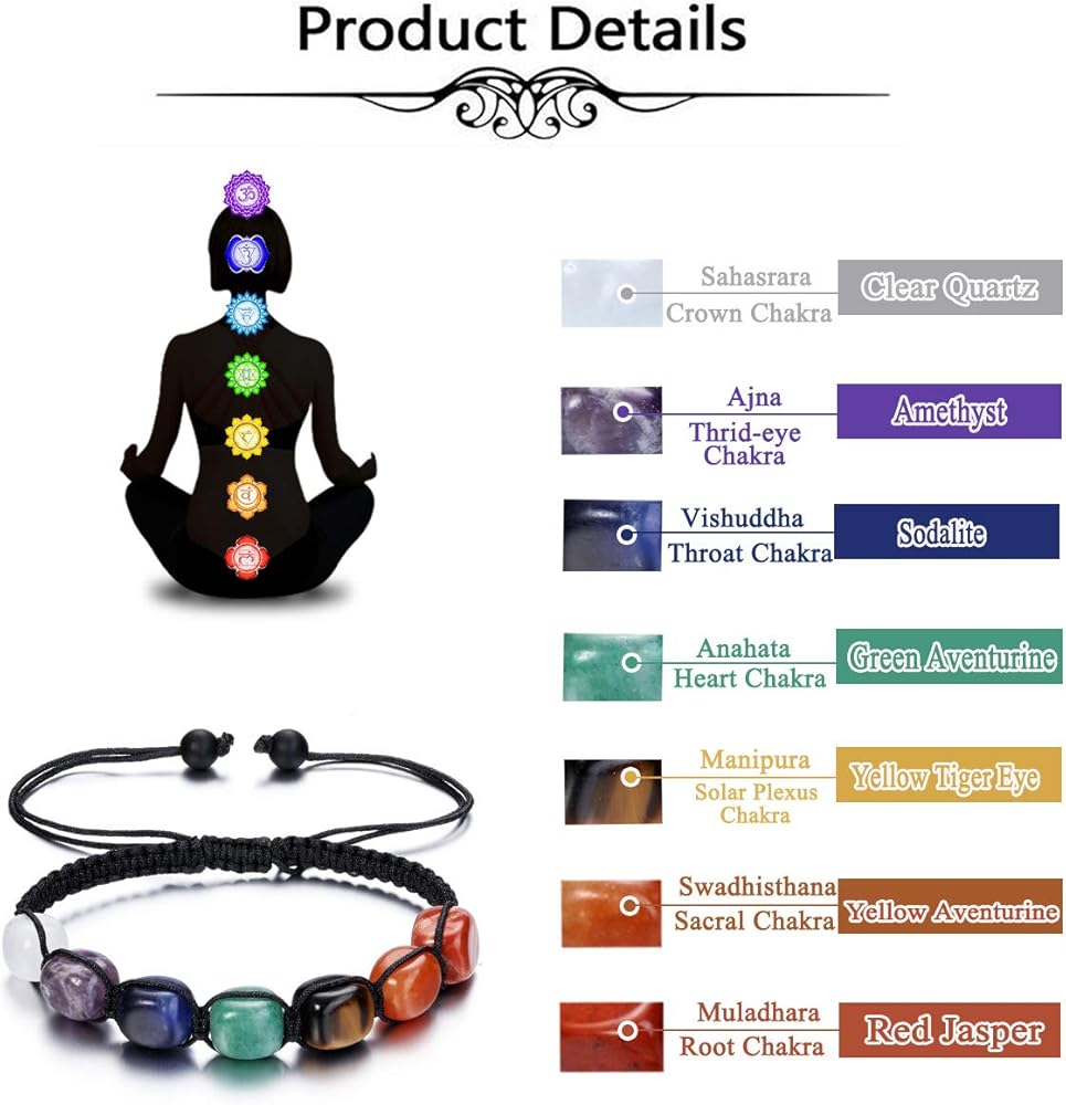 تشمل أحجار الشيكرا السبعة اليشب الأحمر، والعقيق الأحمر، وحجر عين النمر، والأفينتورين الأخضر، والسوداليت، والجمشت، والكوارتز الشفاف. إن ارتداء سوار الأحجار الكريمة المكون من 7 شقرا يمكن أن يساعد الناس على الهدوء والاسترخاء. كما أنه يساعد الناس على التركيز ويصبحوا أذكياء. إنه يحسن كفاءة العمل والقدرة على الدراسة.