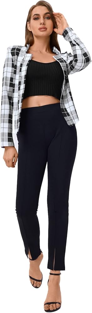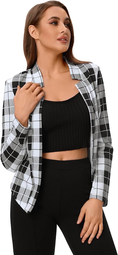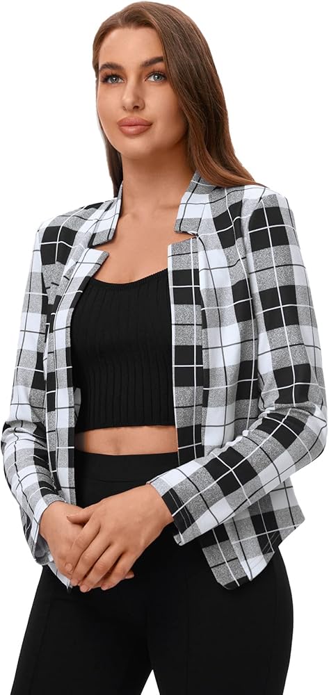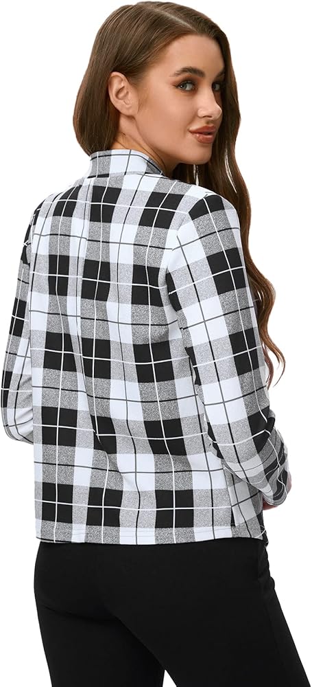 Milumia Women's Elegant Plaid Open Front Notched Neck Blazer Work Outerwear Jacket