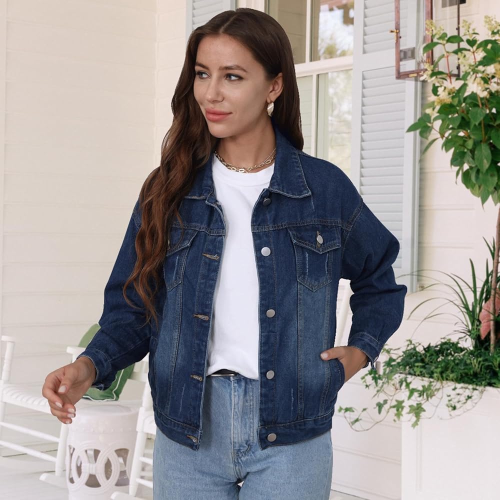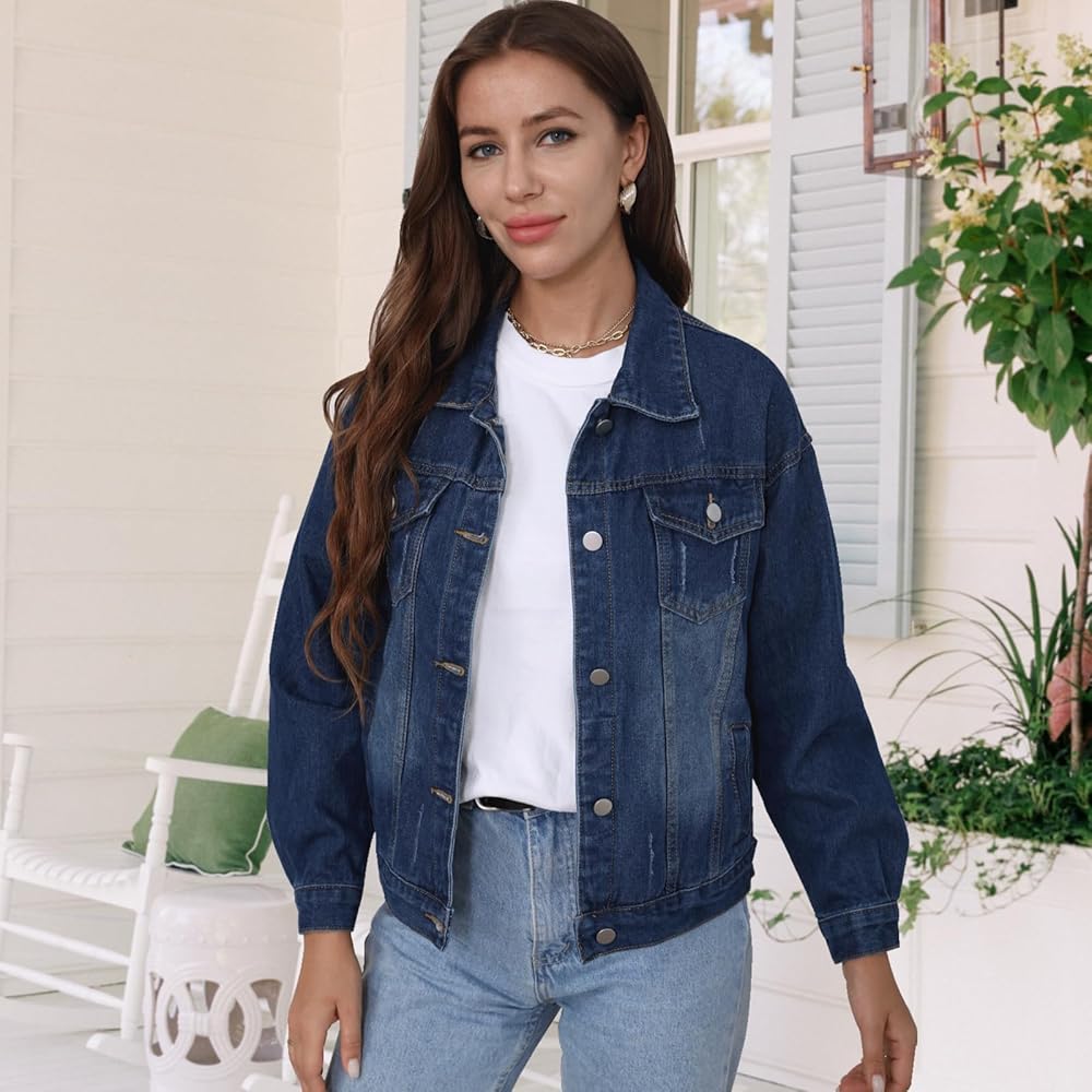 【مناسبة مناسبة】سترة نسائية كبيرة الحجم بأزرار سفلية من الدنيم، مثالية للارتداء اليومي، والتسوق، والكاجوال، والعمل، والسفر، والحفلات، والشاطئ، والمواعيد، والأنشطة الخارجية في جميع المواسم.