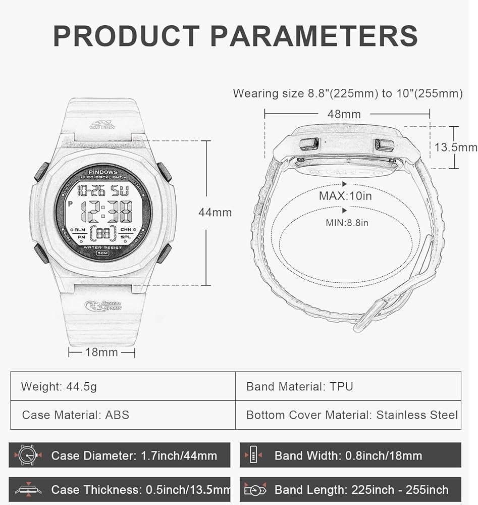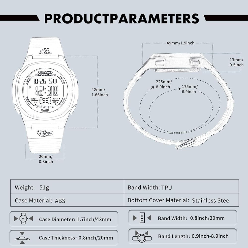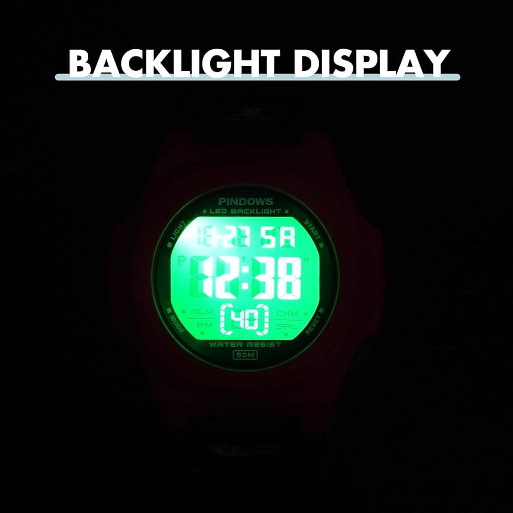 【سهلة القراءة】زجاج شبكي شفاف يقاوم الخدوش اليومية. شاشة LED ساطعة لسهولة التحقق من الوقت، حتى في ظروف الإضاءة المنخفضة. ميزات ساعة توقيت وإنذار قابلة للتخصيص.