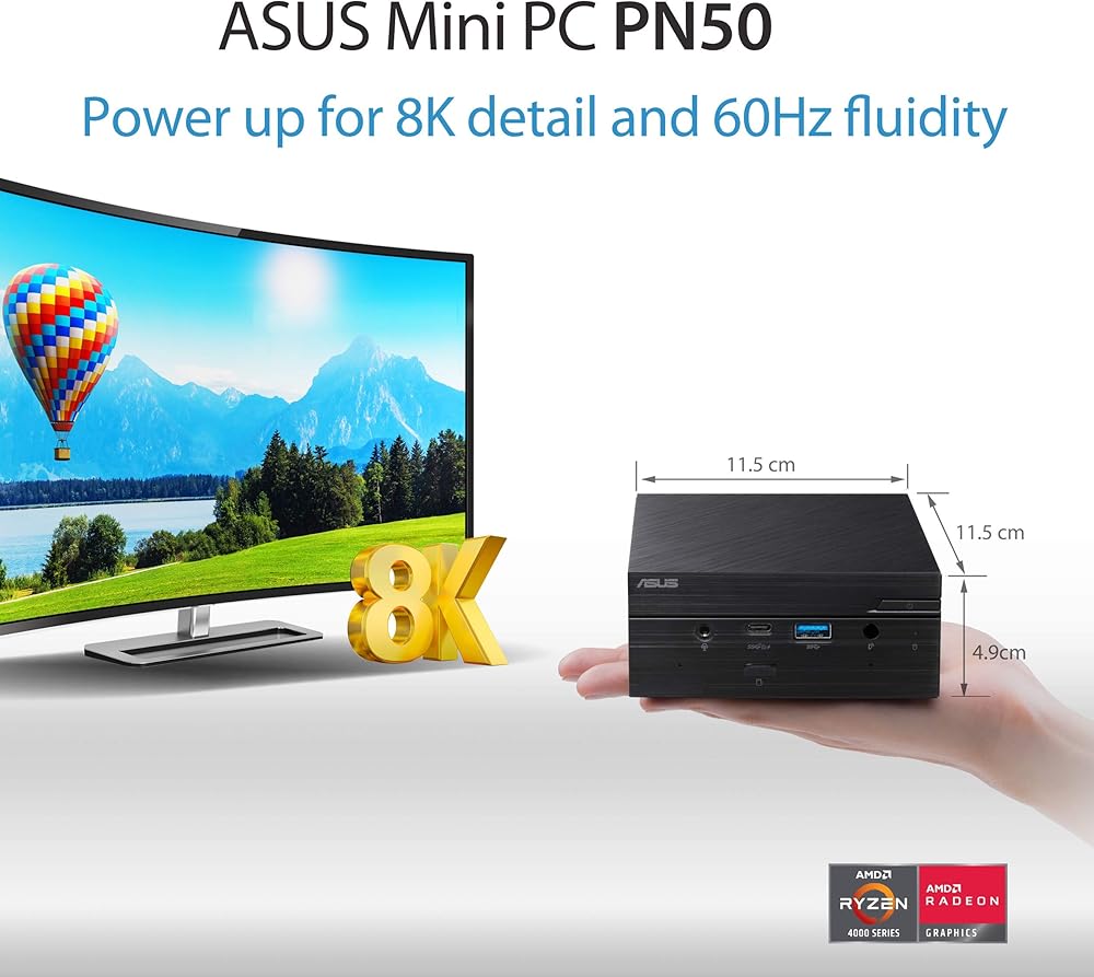 ASUS Mini PC PN50 هو كمبيوتر مضغوط للغاية يوفر أداءً قوياً لمجموعة واسعة من التطبيقات المنزلية والعمل.