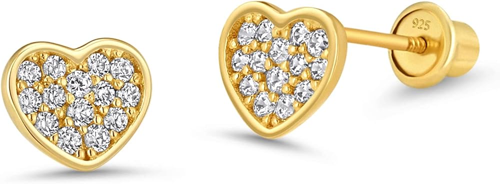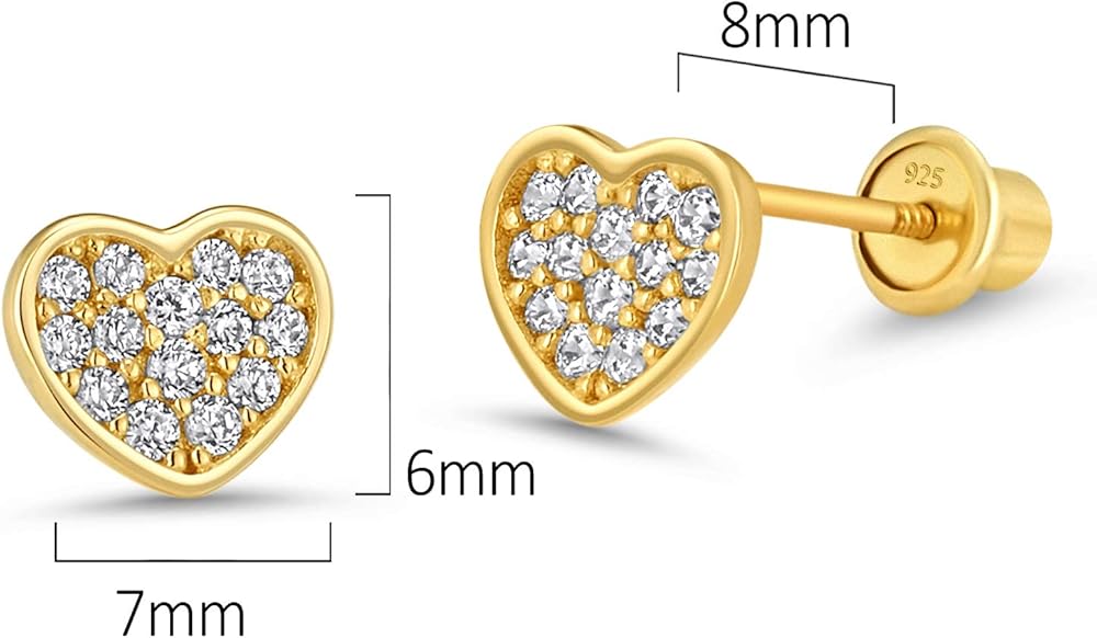 تتكون هذه الأقراط الجميلة من النحاس المطلي بالذهب عيار 14 قيراط. يعزز الطلاء الذهبي لمعانه لجعله يبدو أكثر حيوية له. حجر الزركونيا المكعب (CZ) هو إضافة رقيقة ويمنحك مظهرًا رائعًا. اللولب الخلفي عبارة عن دعامة قرط على شكل كرة أمان يتم تثبيتها وتثبيتها وبالتالي تمنع أي خز في الجزء الخلفي من شحمة الأذن وتقلل من فرص فقدان الأقراط. إنها من أجل سلامة الجميع من البالغين والمراهقين والأطفال الصغار إلى الأطفال. تتوافق جميع أقراط الأطفال الخاصة بنا مع لوائح سلامة منتجات الأطفال المعمول بها من قبل الجمعية الأمريكية لاختبار المواد (الجمعية الأمريكية للاختبار والمواد)، وهي معتمدة من قبل سي بي سي (شهادة منتج الأطفال) لضمان سلامة أطفالك. يستحق طفلك أن يكون آمنًا وبدون أذى في نفس الوقت ليبدو لطيفًا مع أقراطه الجديدة تمامًا.