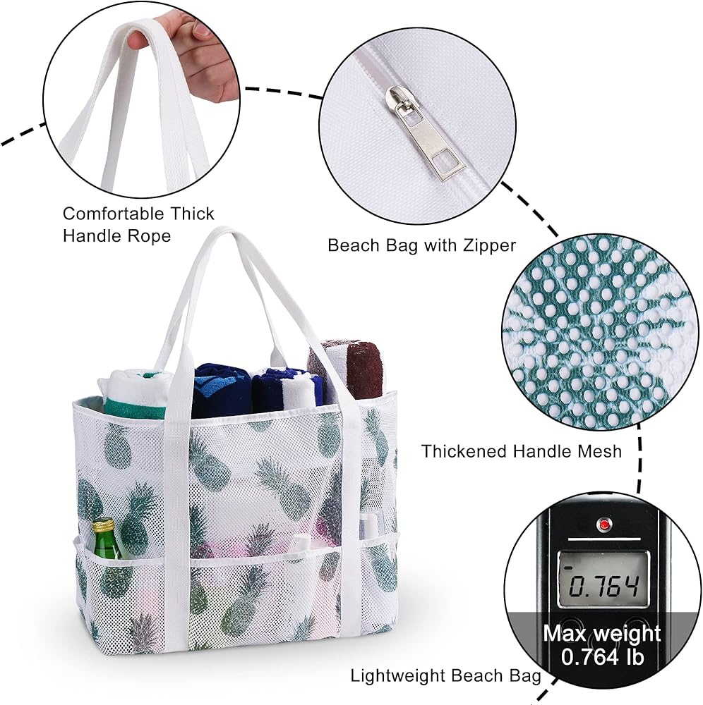 نقدم لكم حقيبة الشاطئ المثالية لقضاء عطلات الصيف! تعتبر حقيبة الشاطئ الشبكية المقاومة للماء والرمل من أساسيات السفر لقضاء عطلة على الشاطئ. إنها حقيبة ذات سعة كبيرة جدًا لحمل كل شيء لك ولعائلتك.