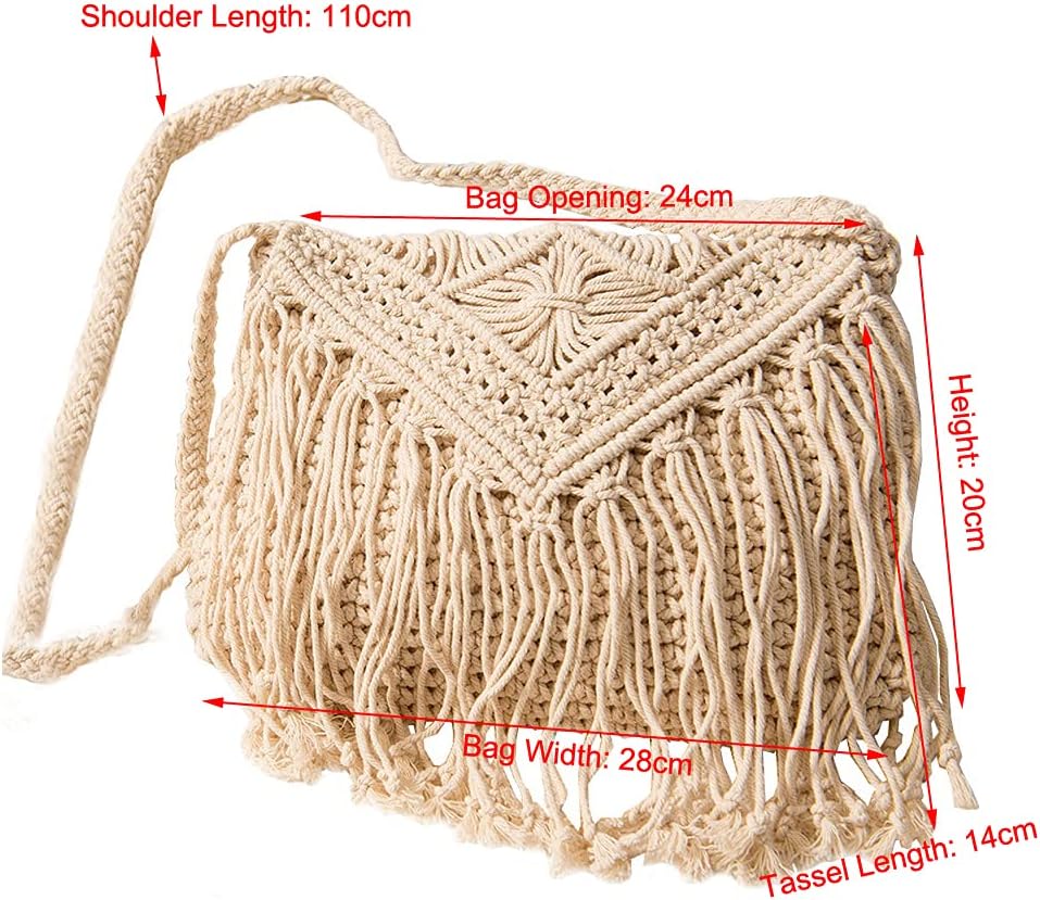 This is a Hallwayee Handwoven Shoulder Bags, Braided Cotton Rope Totes, Straw Beach Bags, Hobo Summer Tassels Handbag
