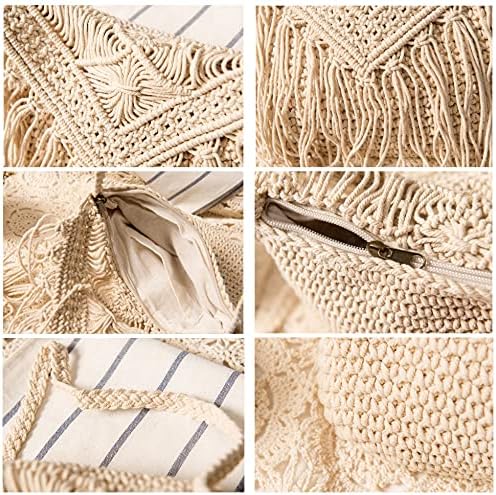 HIGH QUALITY: This handwoven bag is made of high quality cotton rope, soft lining fabric with zipper, lightweight and durable.