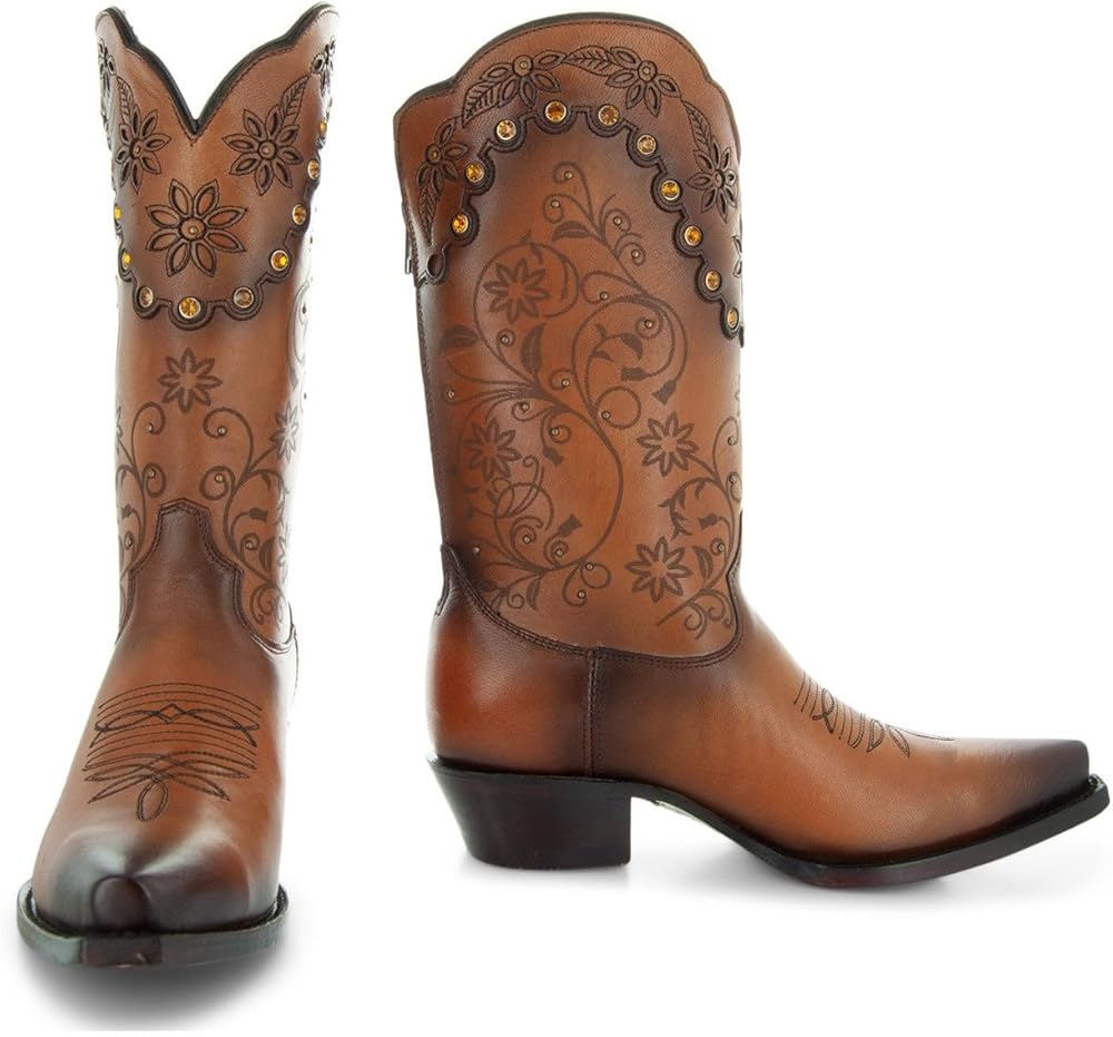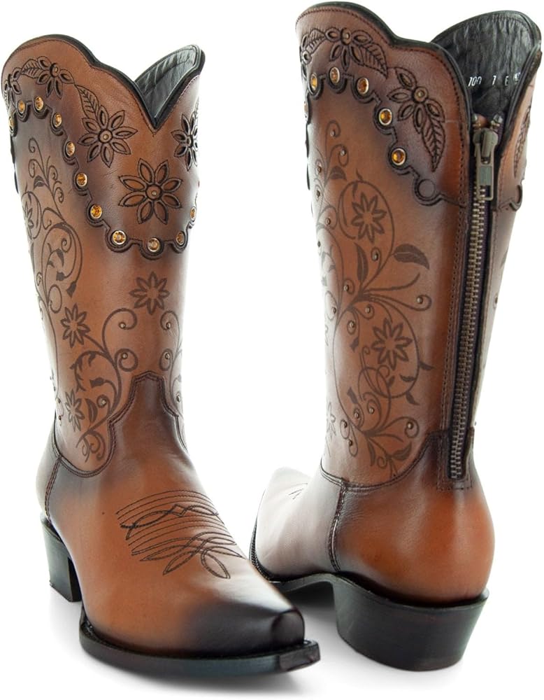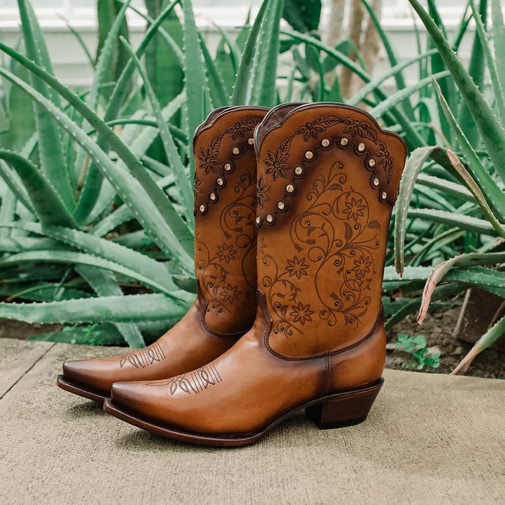 أحذية رعاة البقر مصنوعة يدويًا: يتم تصنيع الأحذية الغربية النسائية يدويًا في ليون، غواناخواتو، المكسيك من قبل بعض أفضل صانعي الأحذية الحرفيين في جميع أنحاء العالم باستخدام الجلد الأصلي لحرفية عالية الجودة لا تقبل المنافسة.