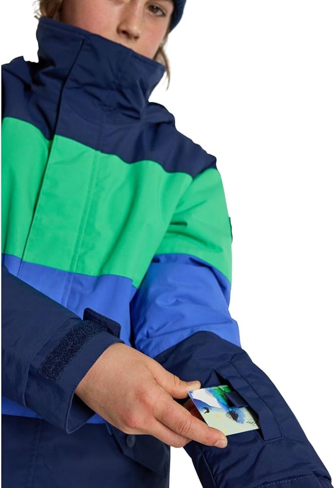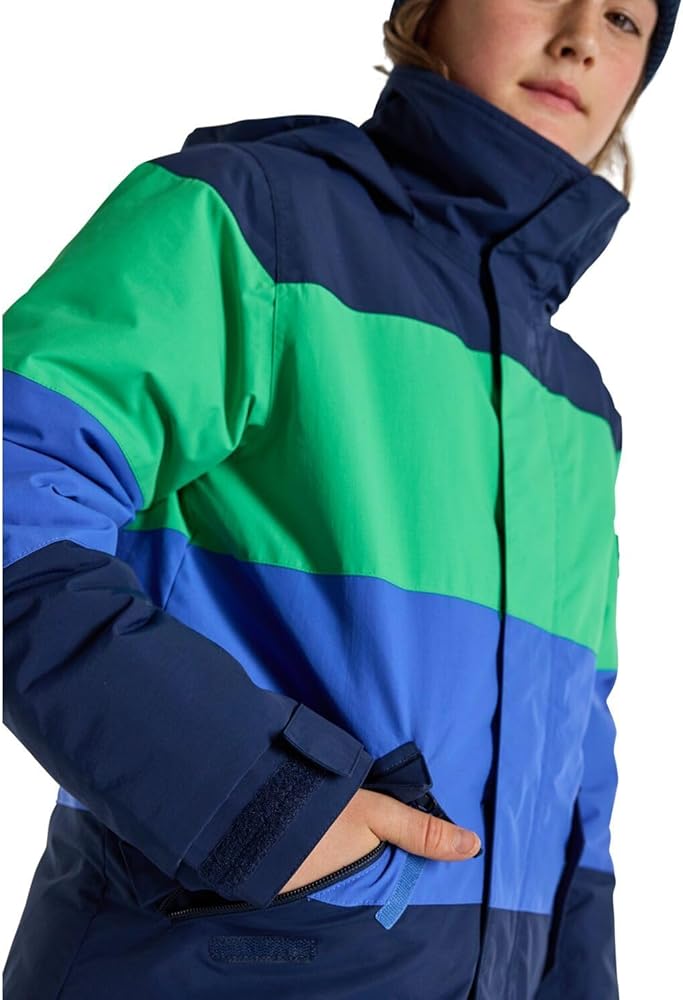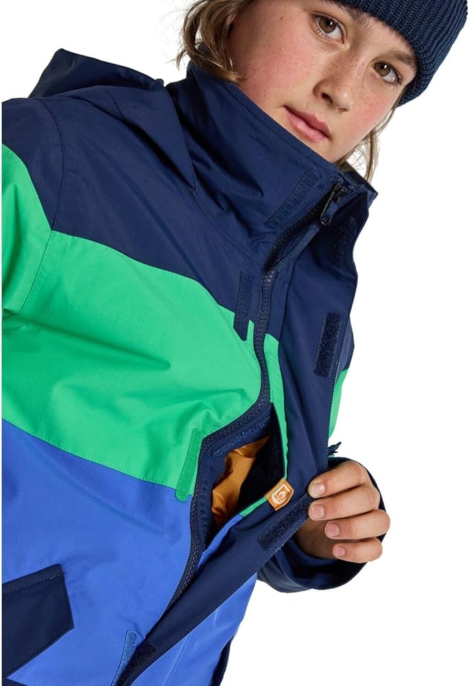 The stylish design is capped with a laundry list of essentials including a snow-blocking waist gaiter that connects to Burton Youth pants, a zippered chest pocket to stash goodies, and Room-To-Grow sleeves that ensure multiple seasons without coming up short on the cuffs.