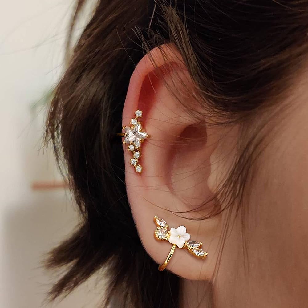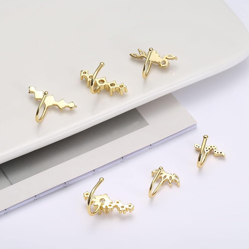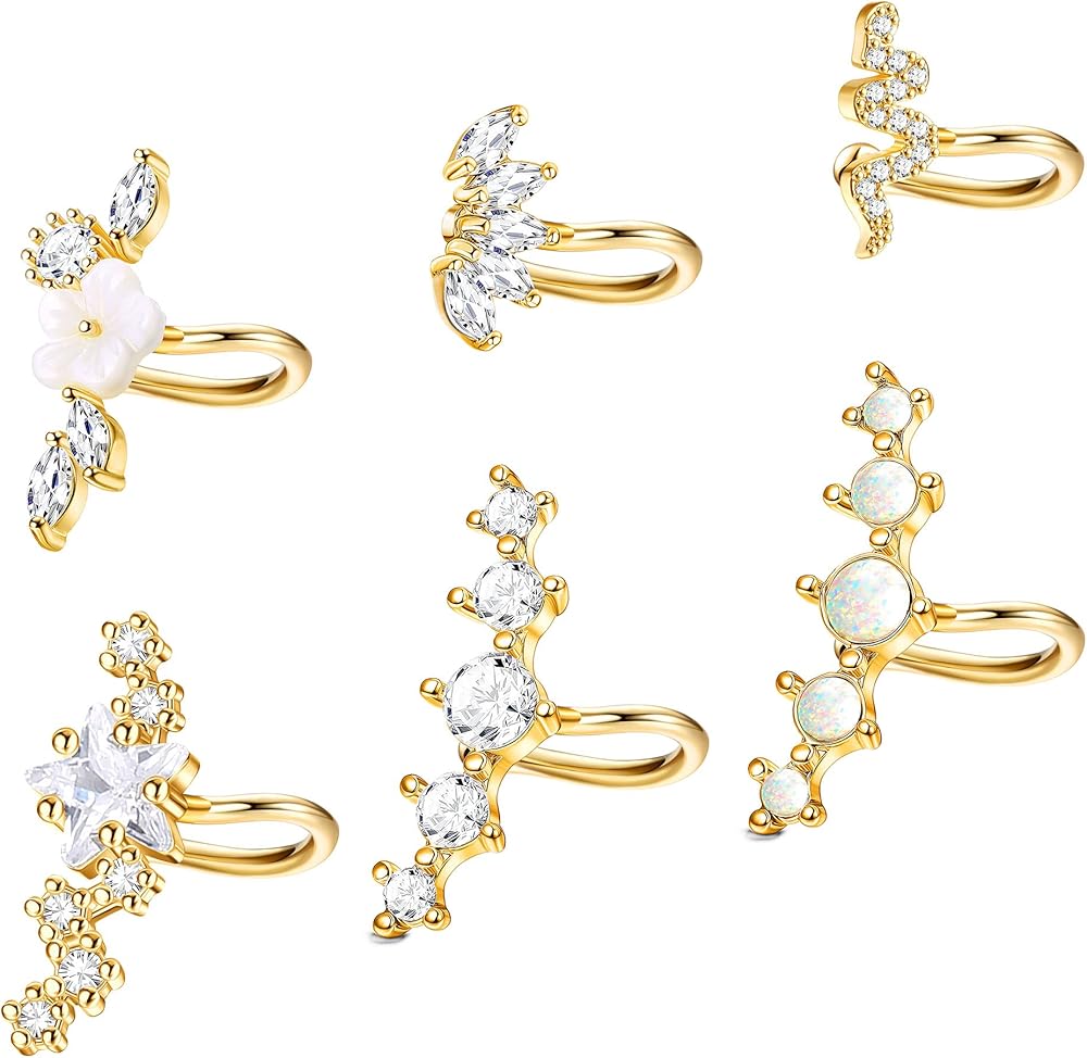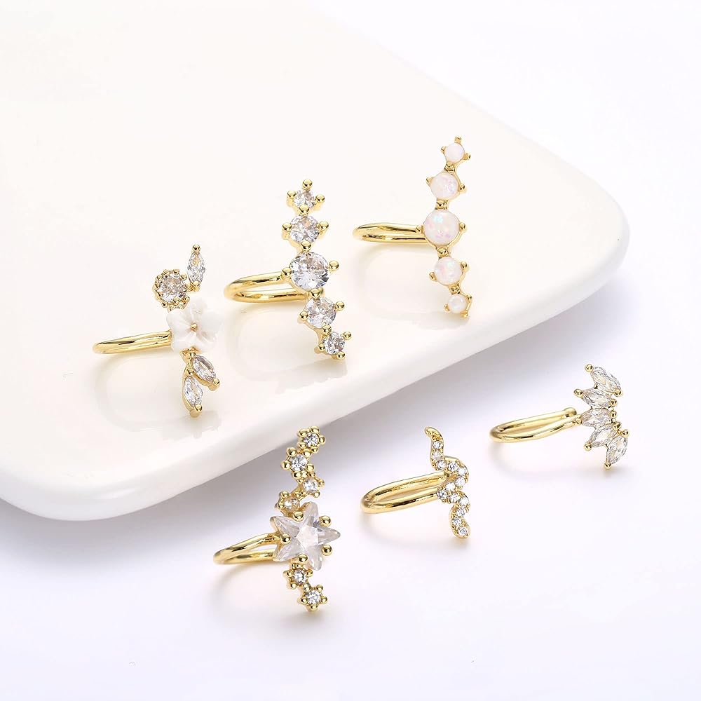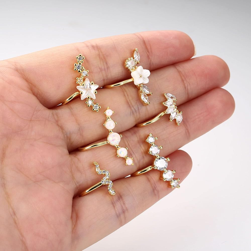 مجموعة أقراط نسائية - ستحصل على 6 قطع من أقراط الأذن الغضروفية بتصميمات مختلفة، بما في ذلك أساور الأذن المرصعة بـ 5 تشيكوسلوفاكيا، وأقراط غضروف الأوبال، ومشبك على شكل ثعبان والمزيد. استخدم عنصر الزهرة والنجمة والكريستال، واجعل الأقراط مختلفة. يمكن ارتداؤها على الأذنين غير المثقوبة. خيار رائع لأولئك الذين لا يريدون الثقب ولكنهم يريدون تجربة أقراط الغضروف.