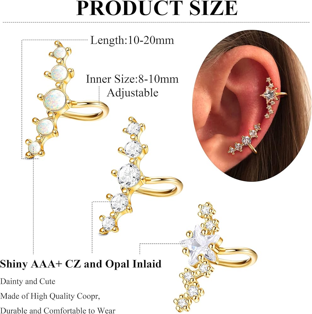المادة - أغلفة أقراط الأذن هذه مصنوعة من النحاس المضاد للحساسية، مع مطعمة بالزركونيا المكعبة اللامعة، شفافة ولامعة، تجعلك أكثر سحرًا.