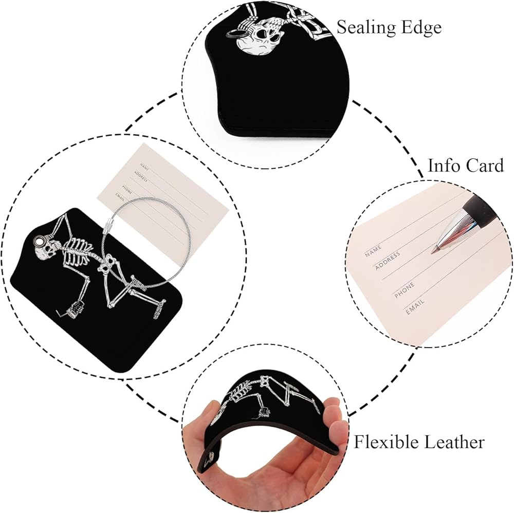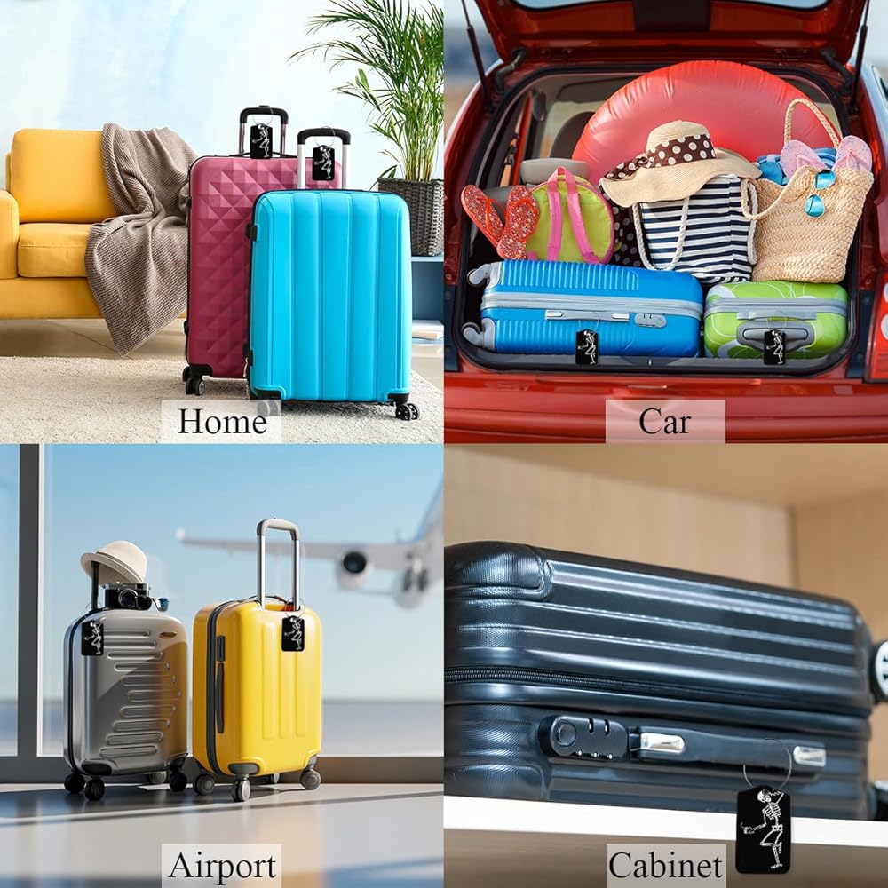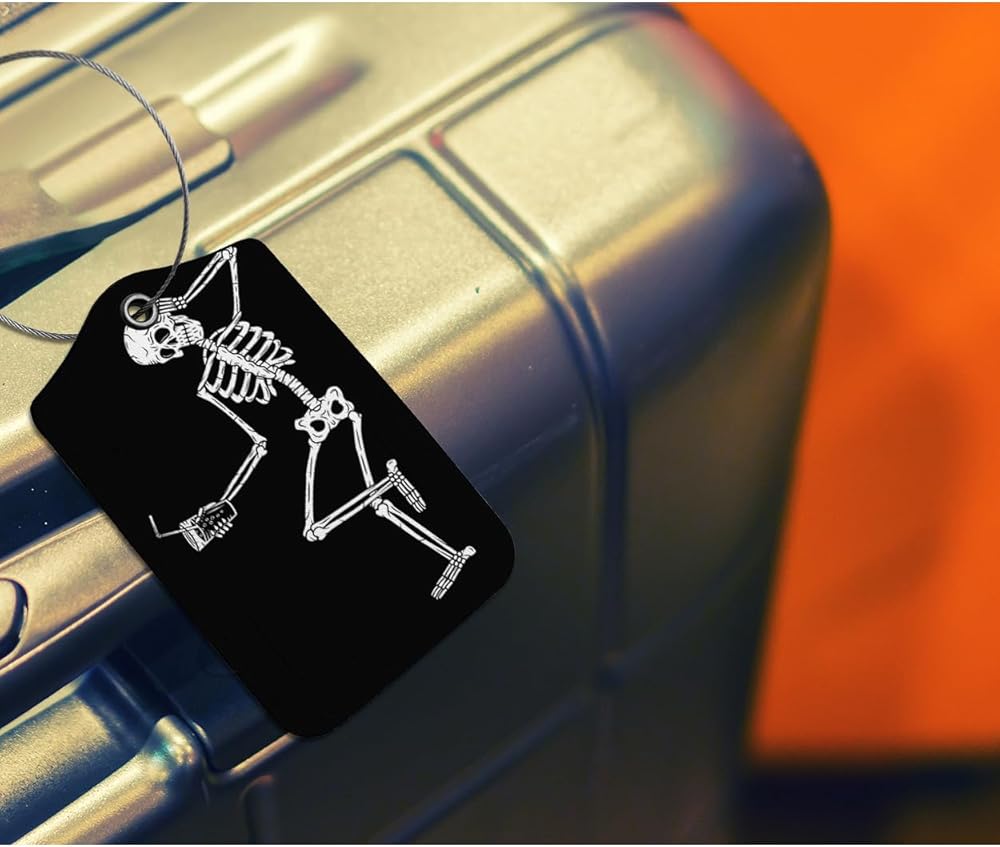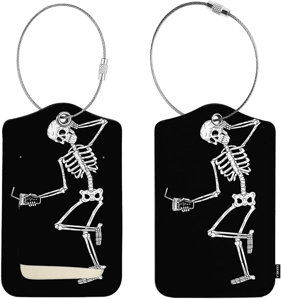 علامات الأمتعة EKOBLA مع غطاء خصوصية خلفي كامل مع هيكل عظمي بحلقة فولاذية مع كوكتيل مضحك عظم مخيف قطعة واحدة من علامة الحقيبة الناعمة قطعة واحدة من بطاقة تعريف الاسم، أسود