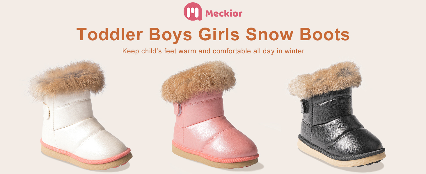 Meckior طفل الفتيات الفتيان في الهواء الطلق مقاوم للماء الفراء مبطن أحذية الثلوج بولي Leather جلد الشتاء الدافئ زلة مقاومة الطقس البارد الجوارب المسطحة أحذية الأطفال