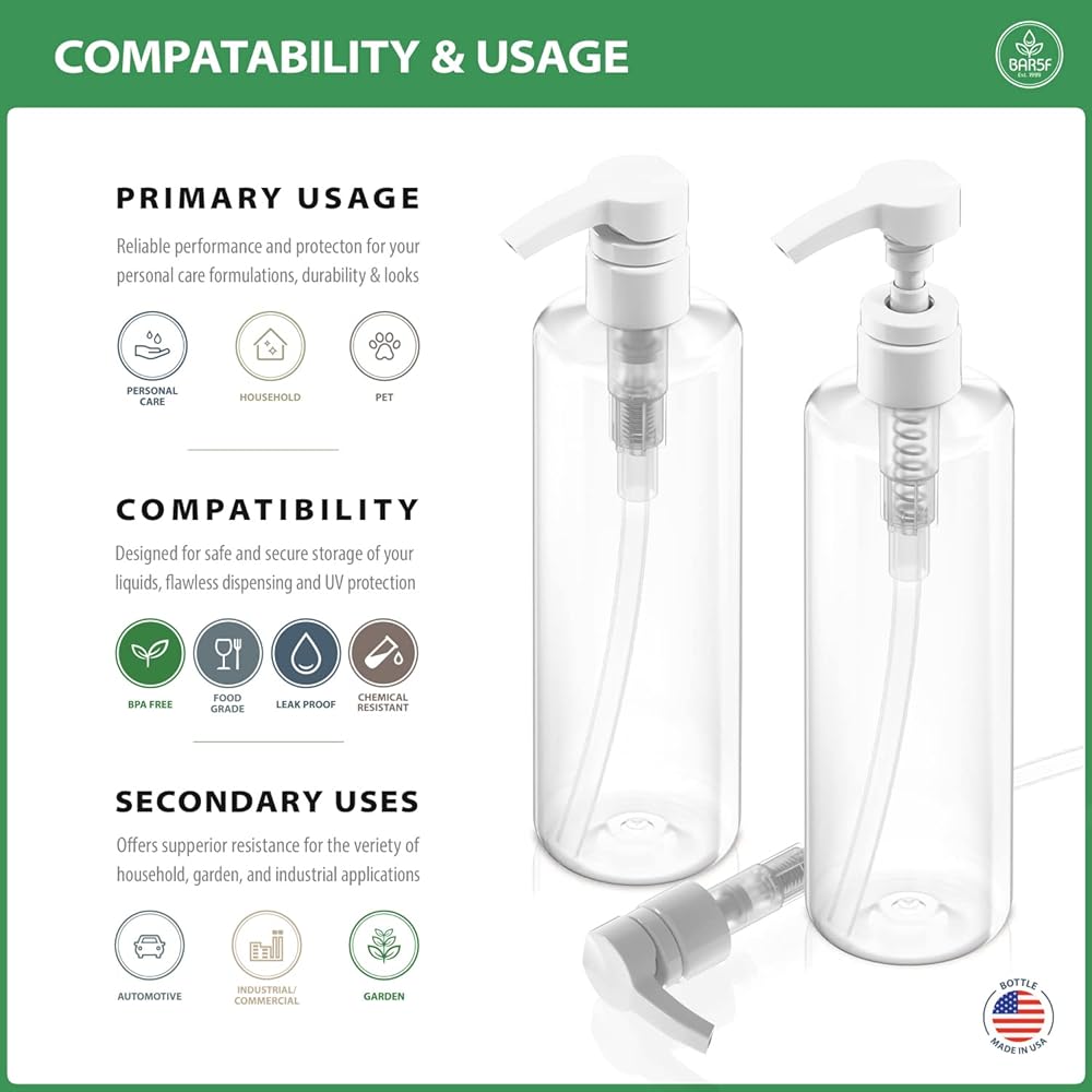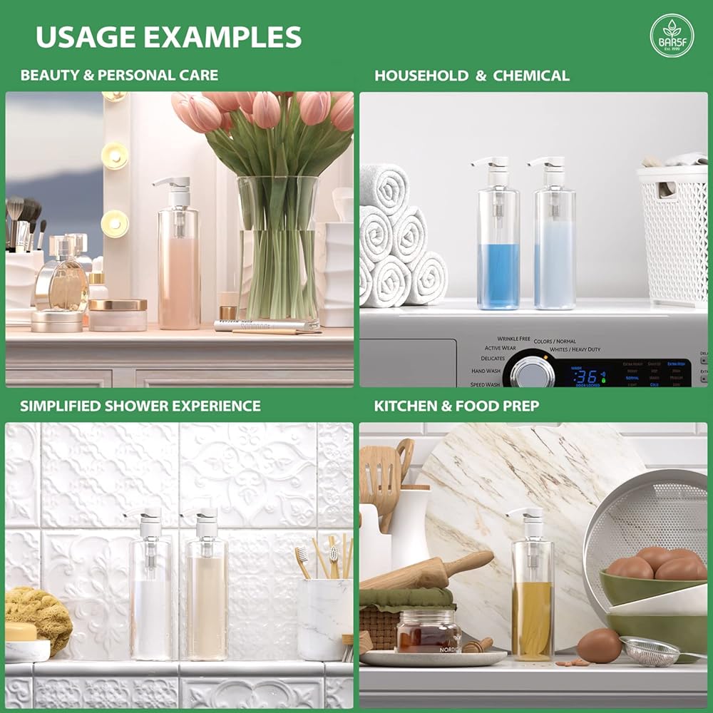 زجاجة مضخة بلاستيكية شفافة بحجم 16 أونصة ليست جذابة فقط في منزلك أو حمامك ولكنها رائعة لإعادة التعبئة من تلك المنتجات ذات الحجم الاحترافي الكبير والتي تتميز بأنها ثقيلة وممتلئة عند حملها. أساسية لتلك الظروف الزلقة في الحمام حيث لا يكون إسقاط منتجات الشعر باهظة الثمن أو كسرها.