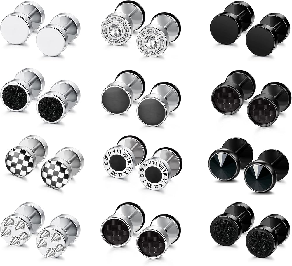 【مجموعة أقراط مقاييس وهمية】 12 زوجًا من الأقراط ذات المقاييس الصناعية بأنماط مختلفة، في مجموعات كومبو باللونين الأسود والفضي. الأقراط المثالية للارتداء كل يوم، نمط مختلف ليتناسب مع ملابسك اليومية. تصميم أنيق وبسيط، يناسب الرجال والنساء من كل العصور.