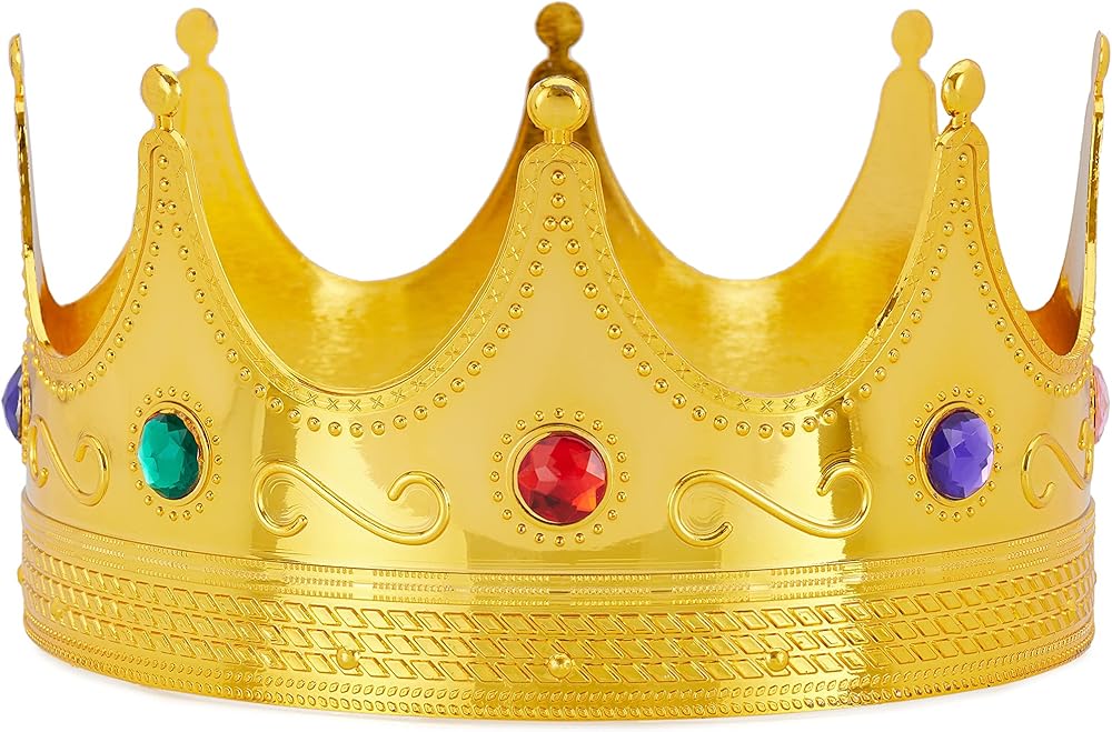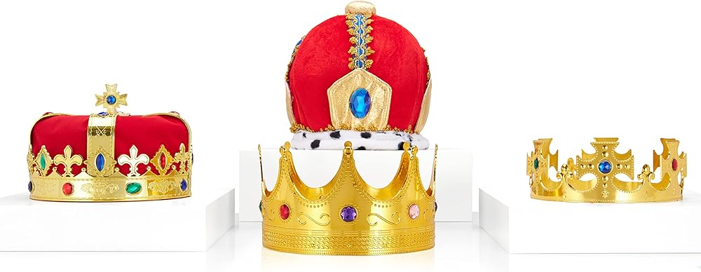 • تاج كينج آند كوين - مجموعة من 3 تاج ذهبي متنوع وتاج ملكي واحد.