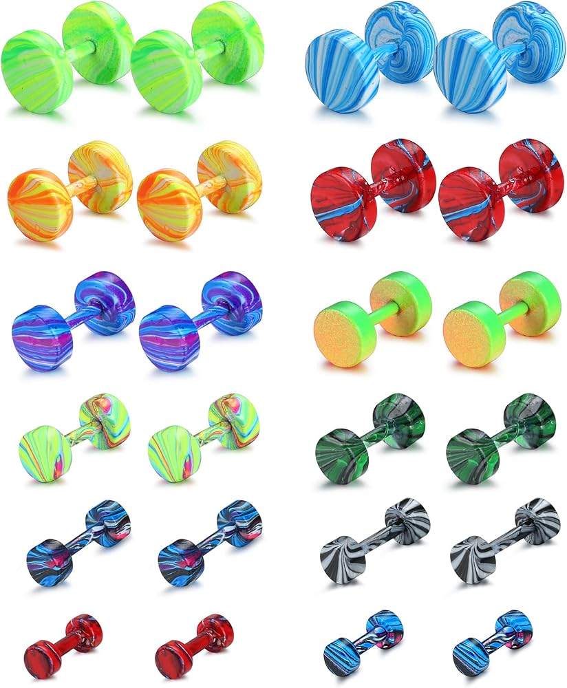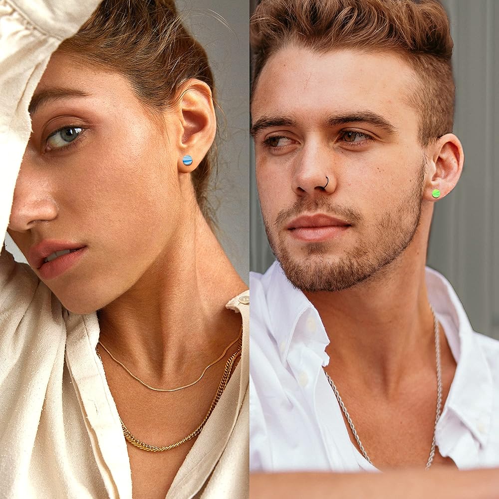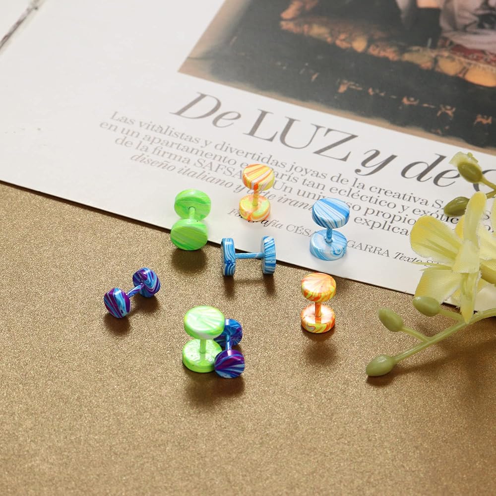 【Earrings Size】Stainless Steel Plug Earrings size: 16G(1.2mm), Bar Length: 0.24"/6mm; Stud Earrings Width:3-8MM. The Perfect Size Is Suitable For Most Men And Women. Assorted Colors,Very Cool! Wearing Them To Show Your Personality And Charm!