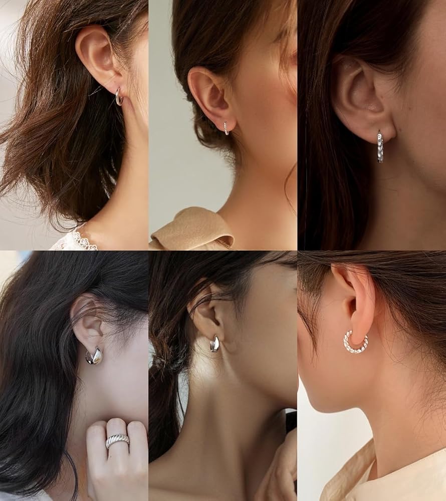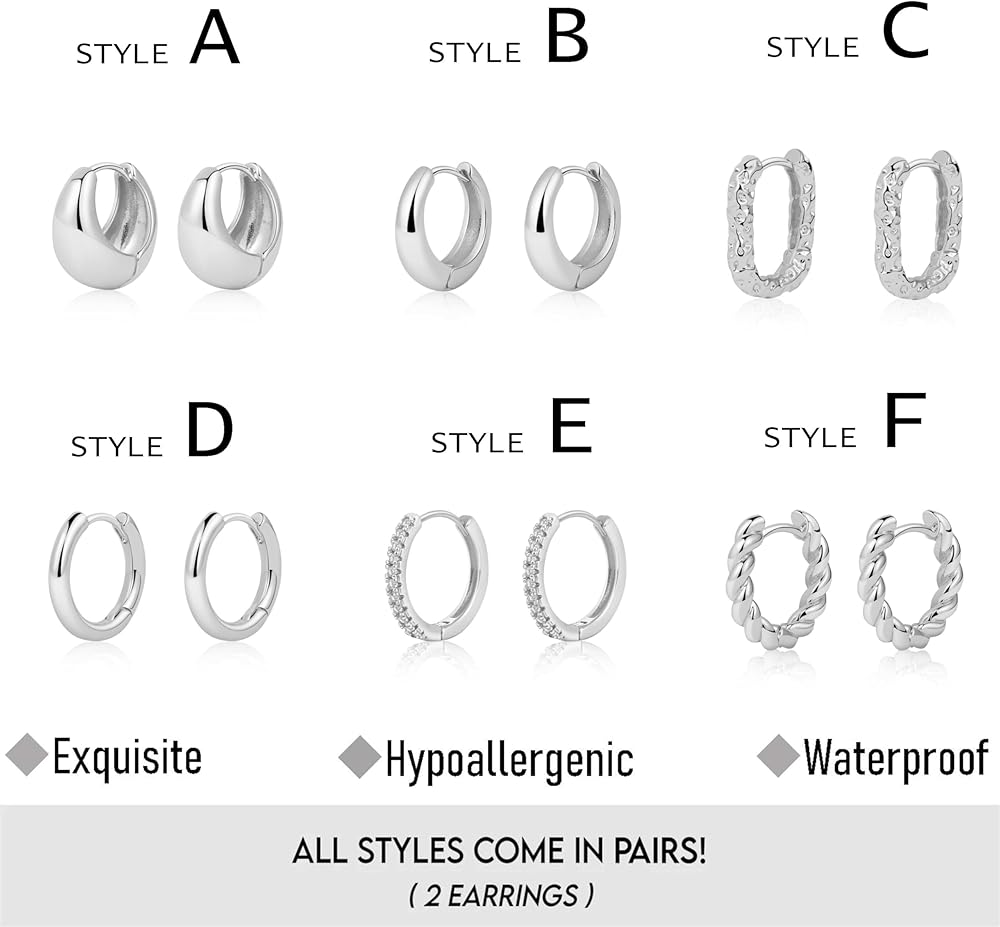 ★Trendy Gold Hoop Earrings Set★ You will get 6 pairs of white gold earrings of different designs come with square U-shape paperclip ear buckle, thick circle earrings, thin circle earrings, twist rope circle ear buckle, CZ circle ear buckle, dot circle ear buckle, CZ circle ear buckle; all these are under 0.1oz hollow square hoop earrings for women, just weight as one cent, comfortable for everyday wear