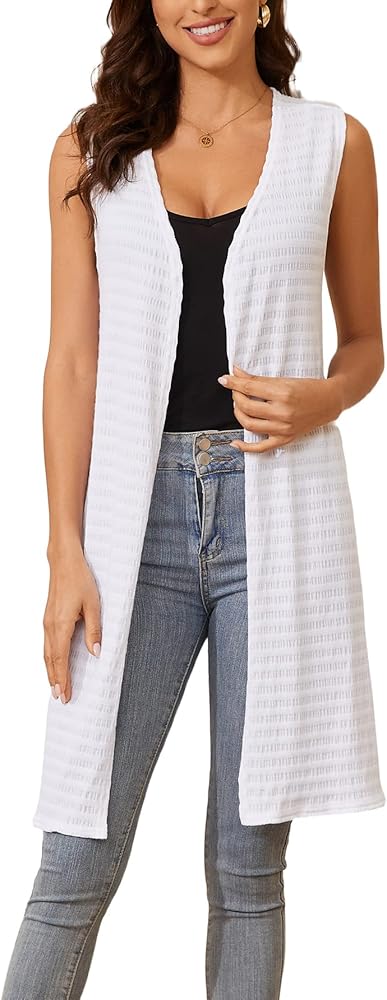 Duster cardigans for women feature: Our open front cardigan vest features casual style, light weight, without sleeves, open front, long knee length, striped solid color, side split hem, stretchy, no pocket, delicate stitching and super soft. Open front cardigan for women is in line with the current trendy, makes you look more attractive