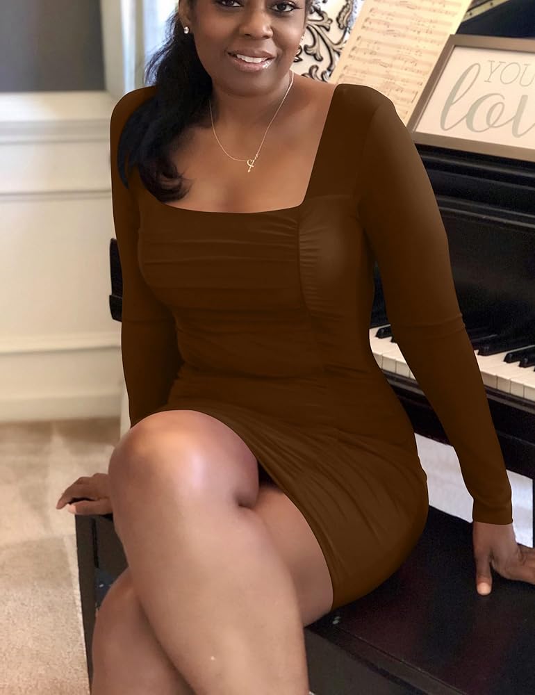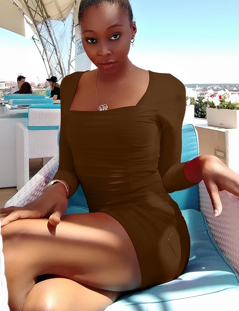 Features: The tight mini dress features square neck, long sleeve, ruched at front, slim fitted, mini length. The short dress is a must-have in your wardrobe, suit for spring fall winter