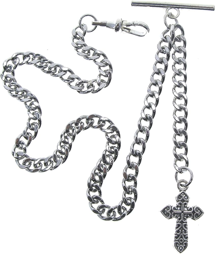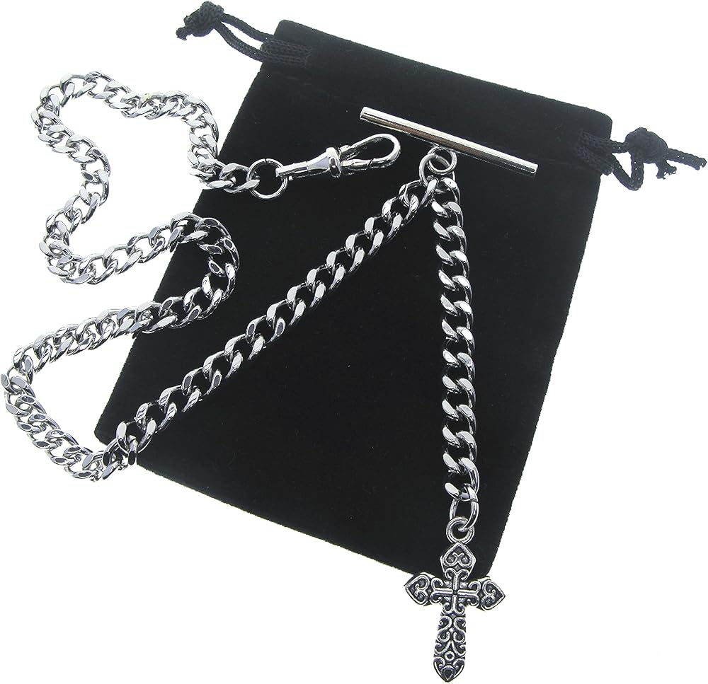 1. 100% Brand New with Excellent Workmanship & Materials 2. Plating Color : Silver color 3. Chain Pattern : Cuban/Curb Link Item Size (approximate) : - Long Chain Length : 30 CM (12") approx. *Not Include the Clasp - Short Chain Length : 5 CM (2") approx. *Not Include the Fob - Chain Thickness : 0.6 cm approx. - T-Bar Length : 3.4 cm (1 1/4") approx. Package Includes: 1 X Albert Chain + 1 X Black color Velvet Pouch
