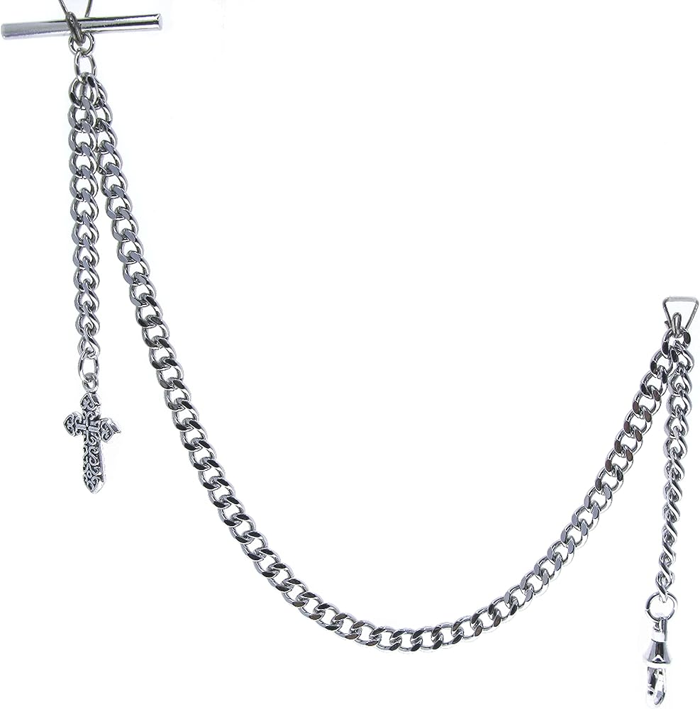 100% Brand New Silver Color Albert Chain with T-Bar & High Quality Swivel Clip