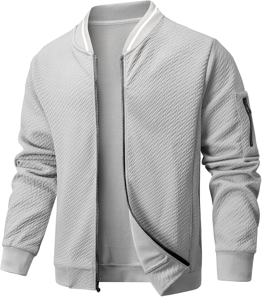 【تصميم أنيق】: سترة كاجوال للرجال مصممة بسحاب كامل، وحاشية مضلعة وأساور أكمام، وذراع يسرى بسحاب مزخرف وجيبين جانبيين في الأمام. يتميز بتصميم جاكار متين بنمط على شكل حرف V، ونسيج ناعم مختار وشفاف، مما يمنح هذه السترة إحساسًا أنيقًا وفريدًا.