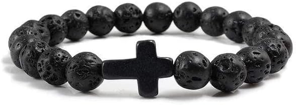 حبة اللافا السوداء وسوار الصليب للرجال والنساء المسيحيين | سوار الصليب المسيحي | سوار الصليب الحجر الطبيعي