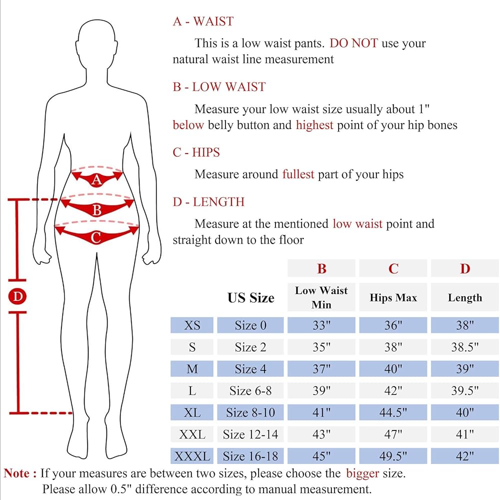 Low Waist Min: 33" ------ Hips Max: 36" ------ Length: 38" ------ Inseam: 29"