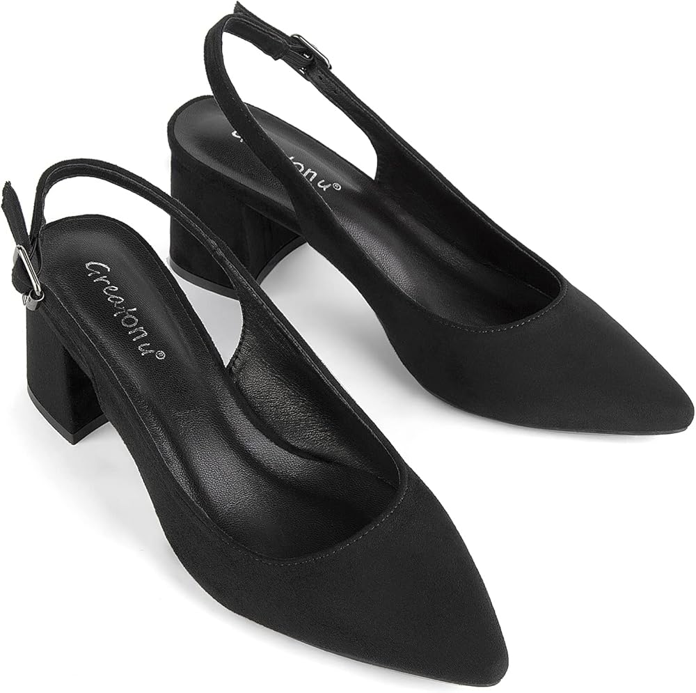 حذاء نسائي من Greatonu بكعب خلفي مدبب ومقدمة مدببة حذاء أسود مقاس 8