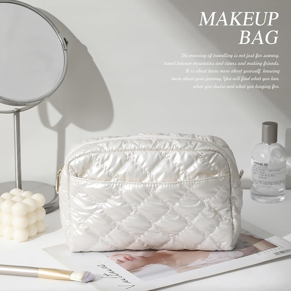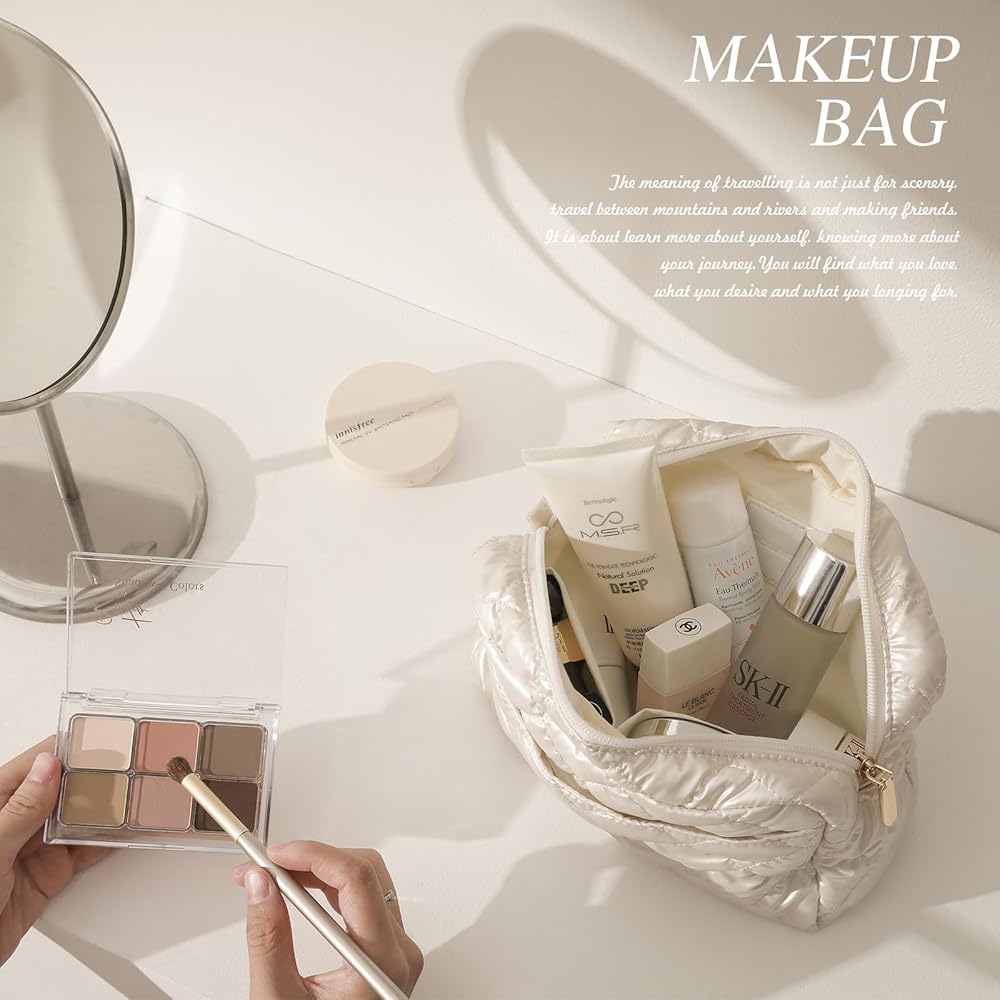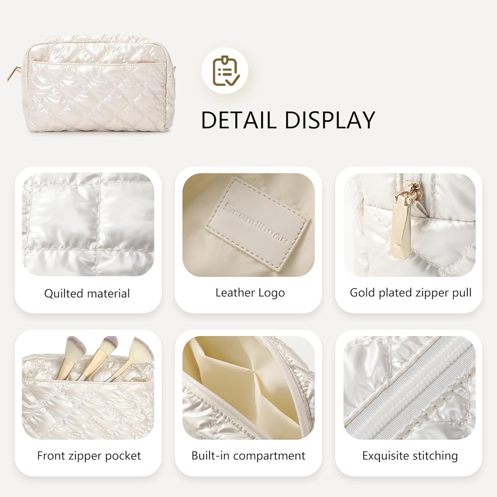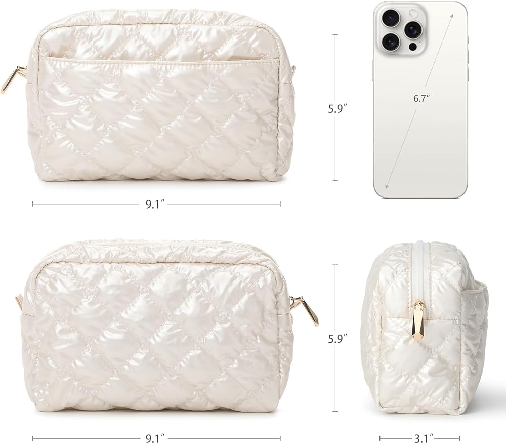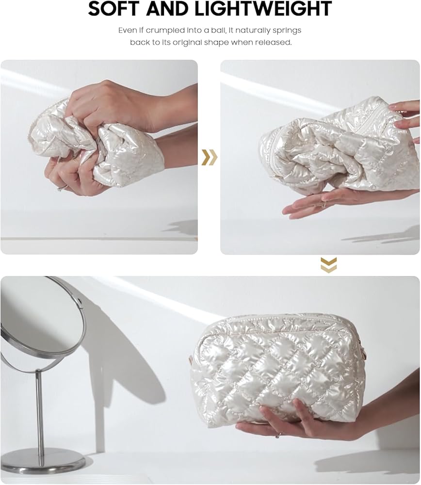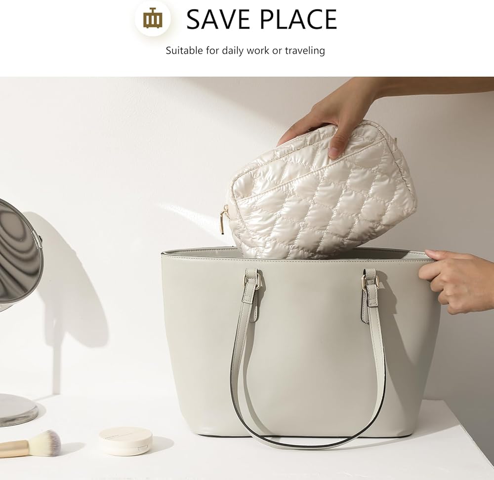 ✅مثالية فخمة في كل لمسة: استمتع بالنعومة الشبيهة بالأسفل للطبقات البينية الخاصة بنا، وقد تمت خياطة حقيبة مستحضرات التجميل الخاصة بنا بخبرة لتشعر بأنها مذهلة مثل مظهرها - لأنك تستحق الأفضل.