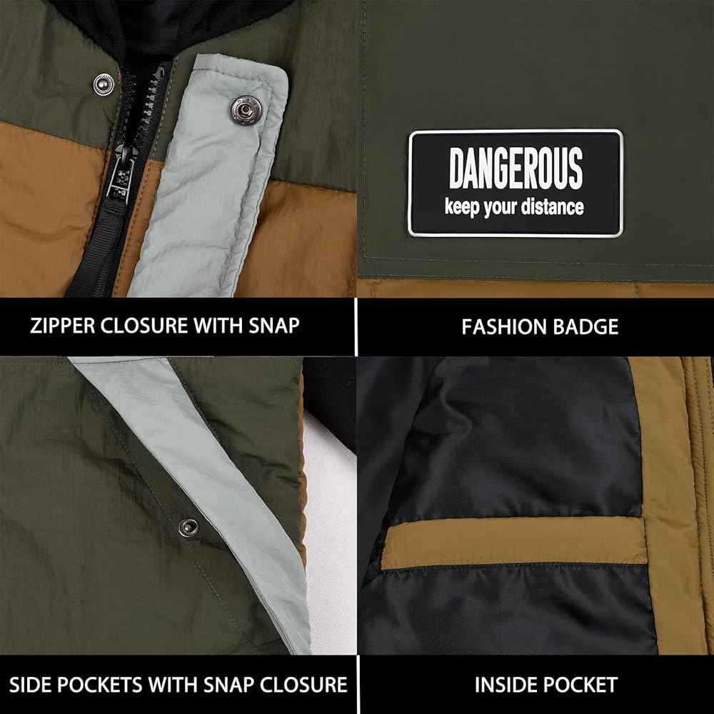 【Multi Pockets】Mens insulated fashion sweatshirt featuring with 3 pockets —— 2 side pockets with snap closure and 1 interior pocket for outdoor essentials