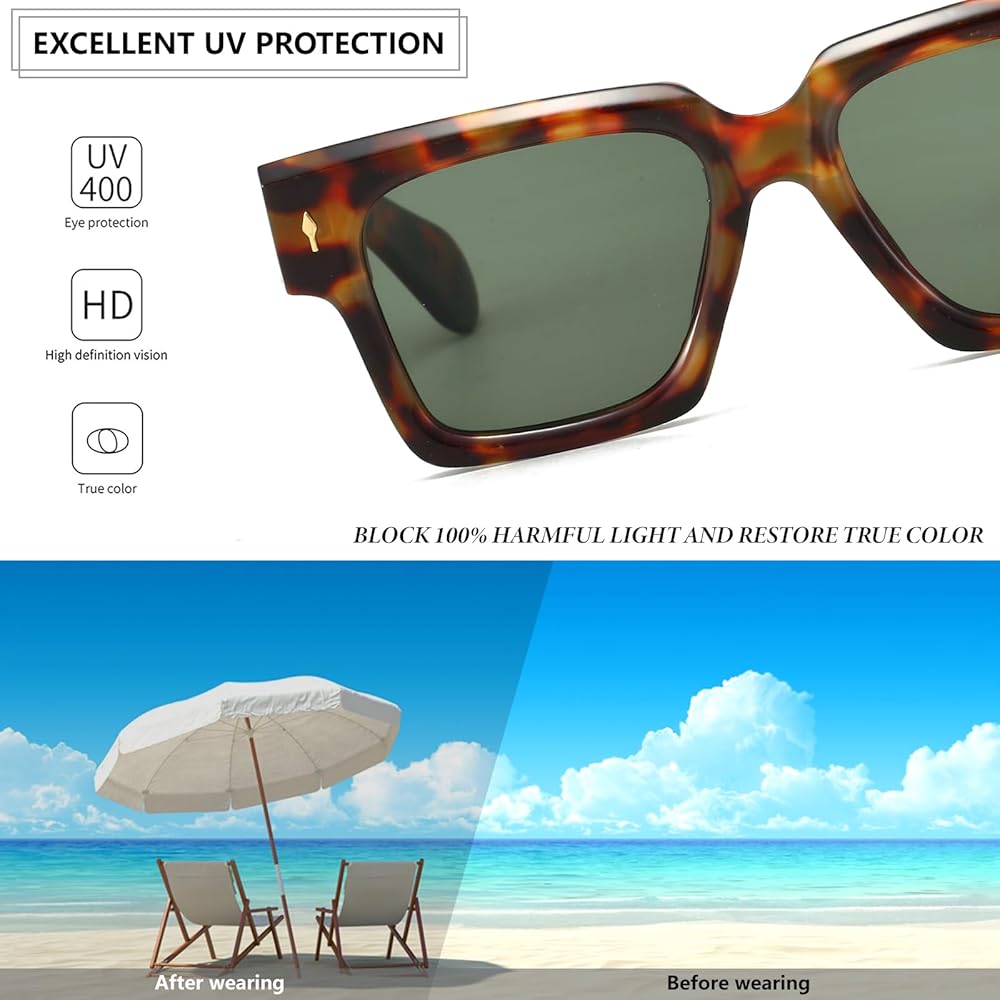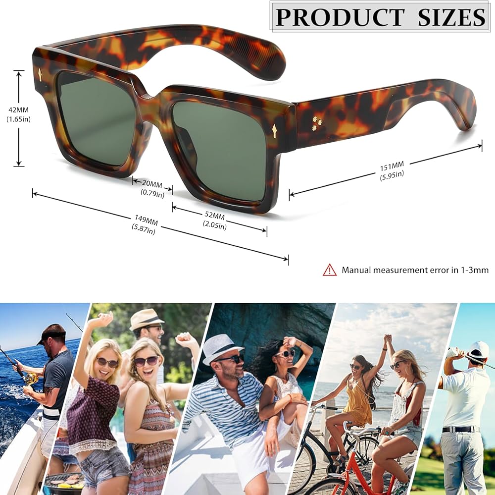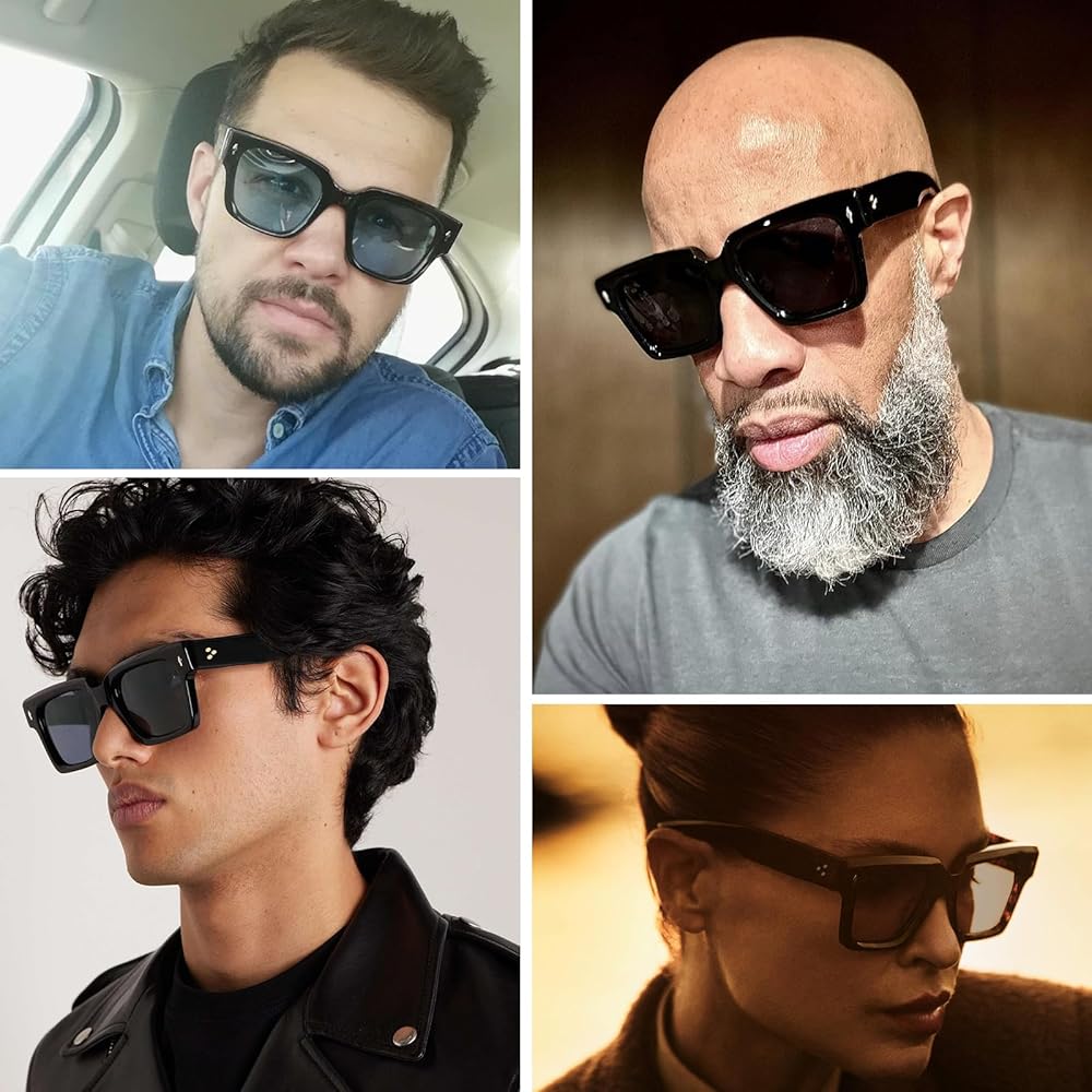 【PREMIUM MATERIAL】 The thick wide and anti slip temples make them easier to handle and comfortable to wear, the integral nose pads and acetate square frame ensures that you can wear them all day without feeling any discomfort, these modern thick frame square sunglasses won't let you down.