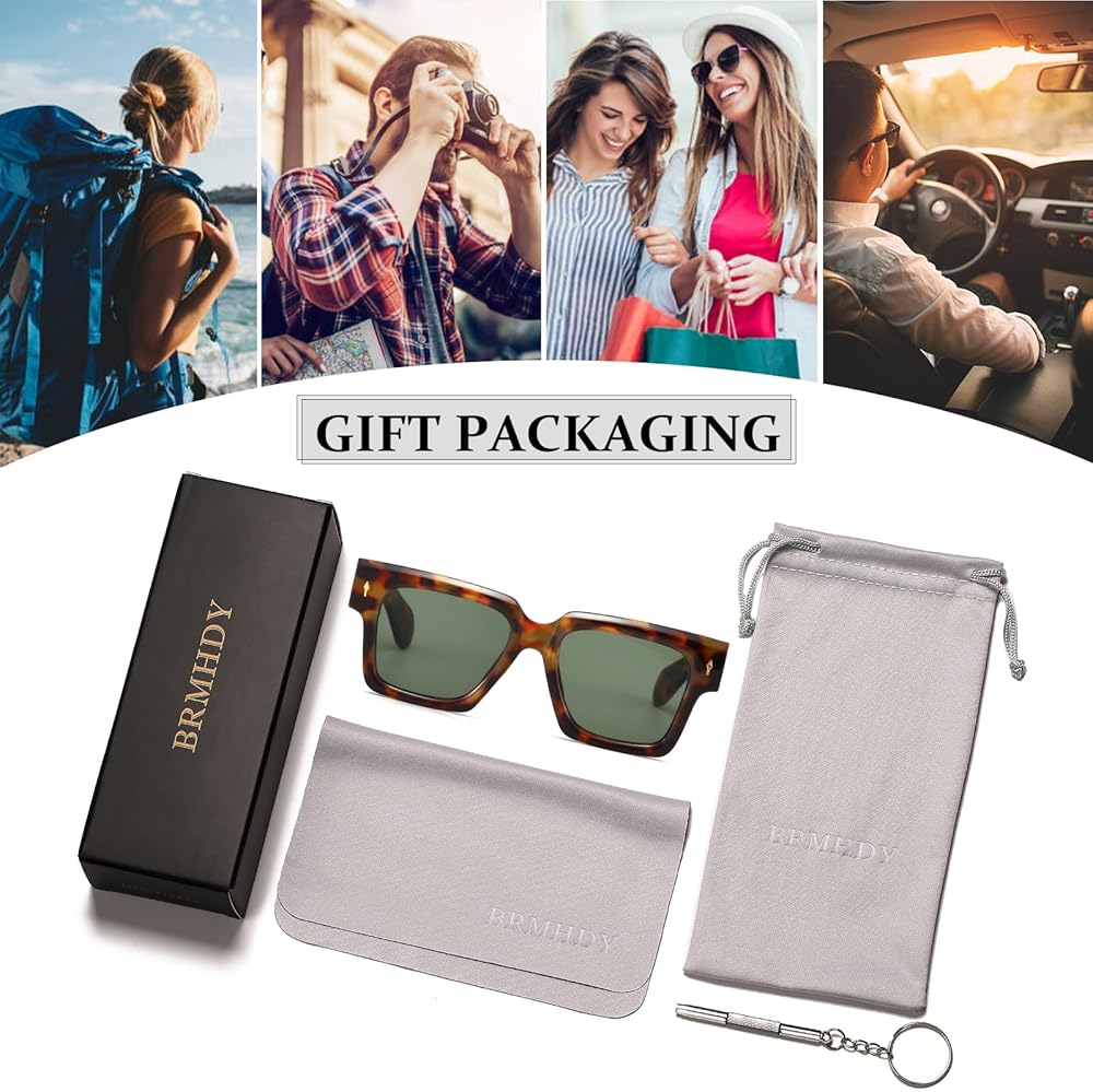 【PROTECT YOUR EYES】The HD UV400 lenses of BRMHDY thick frame fashion mens womens sunglasses offer excellent UV protection, and gives you perfect visual experience. The classic colors like black, leopard, brown, and grey of these trendy chunky rectangle sunglasses are compliment your fashion and unique choices effortlessly.
