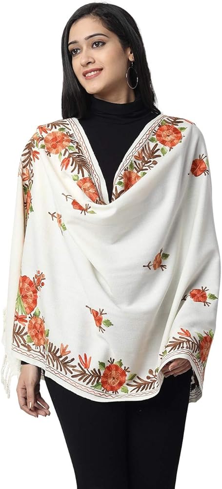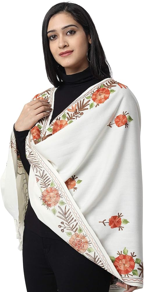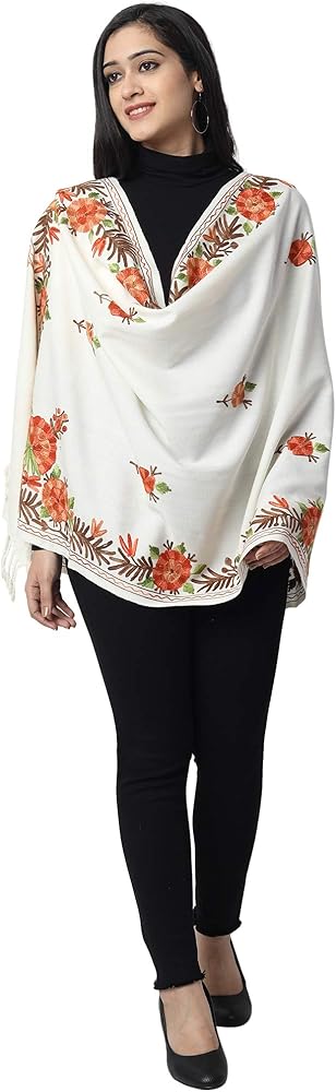 Stay warm and stylish with this woollen stole finished in rich hues. It features kashida embroidery, aari work from Kashmir itself. This embroidered stole is crafted by artisans of Kashmir using traditional techniques. It beautifully blends a classic design expression with age old textures and patterns. You can sport it with jeans or suits or as a wrap. Furthermore, it is recommended to be kept away from extreme heat, fire and corrosive liquids to avoid any form of damage.