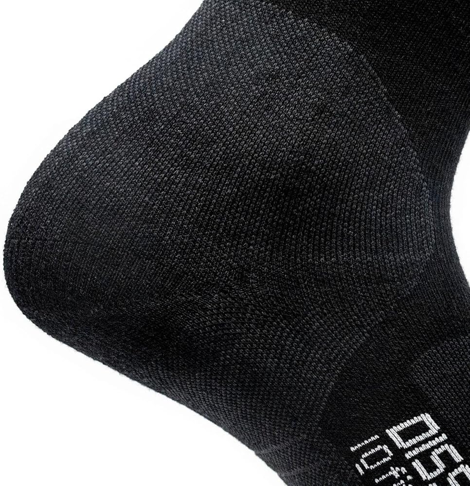 THIN MERINO SKI SOCKS - The IQ Fit Hybrid sock combines the thin-yet-substantial construction of the IQ Fit Ultimate, with thoughtfully mapped low-profile padding; it ensures warmth without bulk; the highest possible Merino Wool content, while still retaining a precise Dissent fit, even when damp or wet; fabric composition: 40% Merino Wool, 56% Polyamide, 4% Lycra