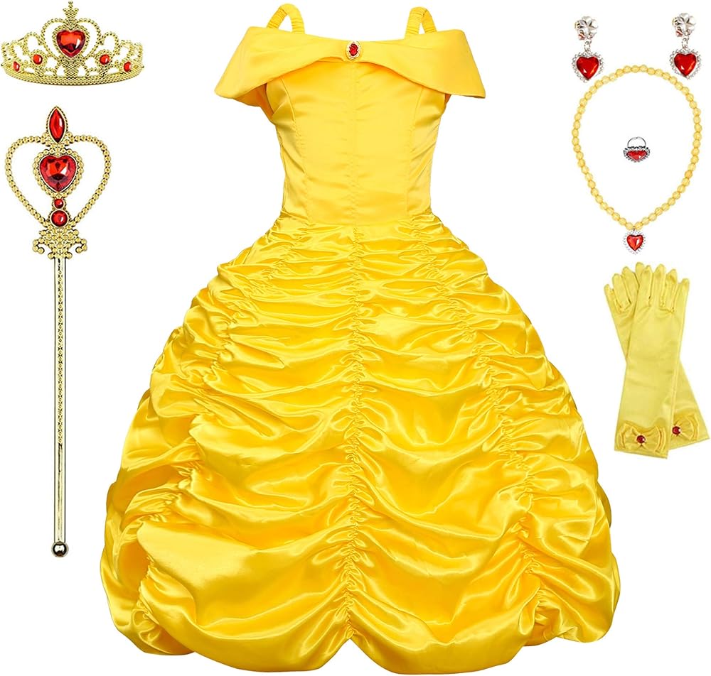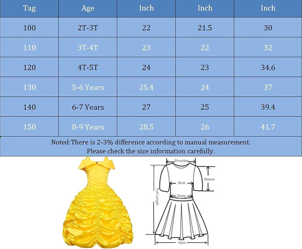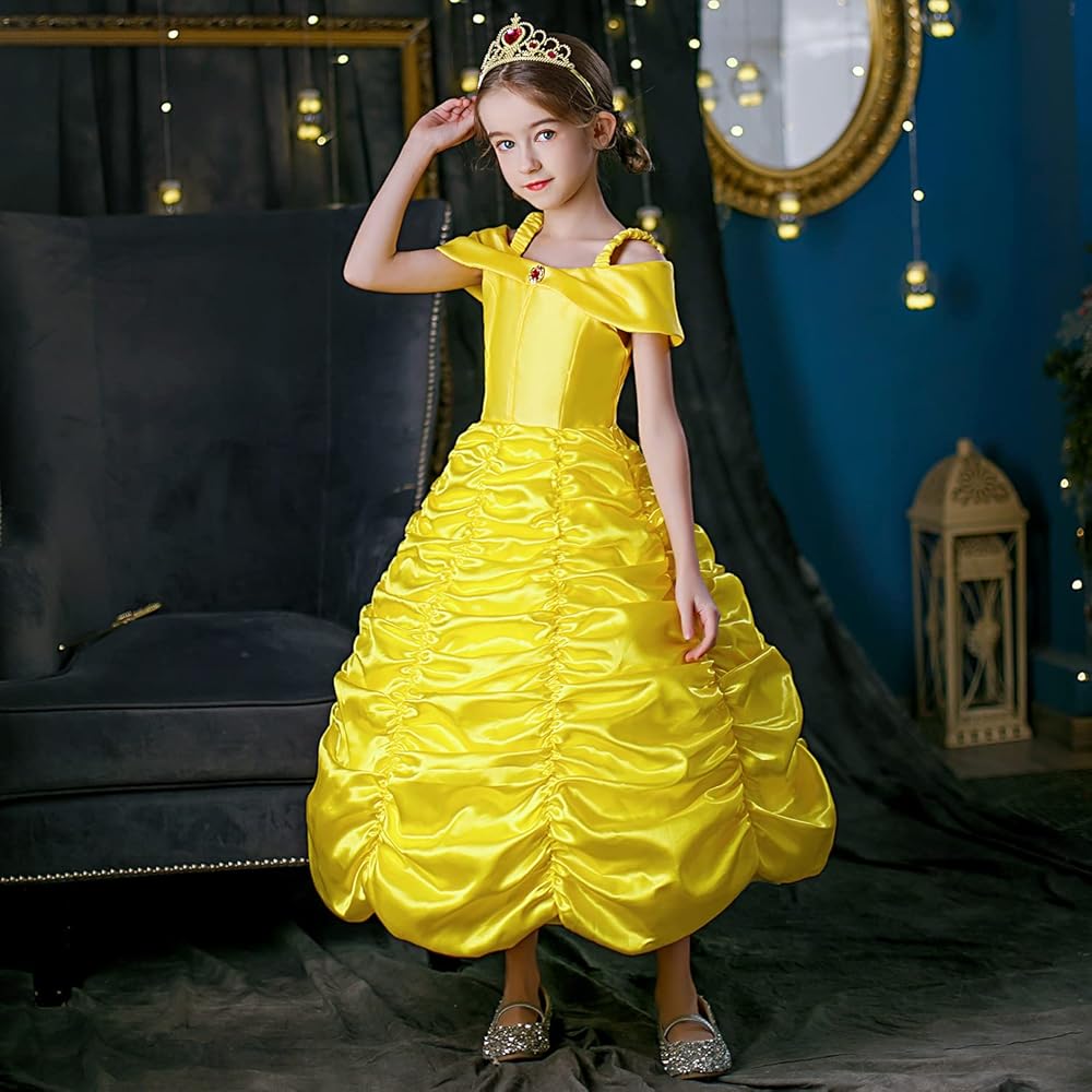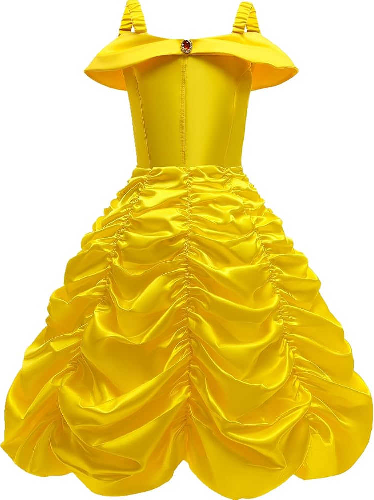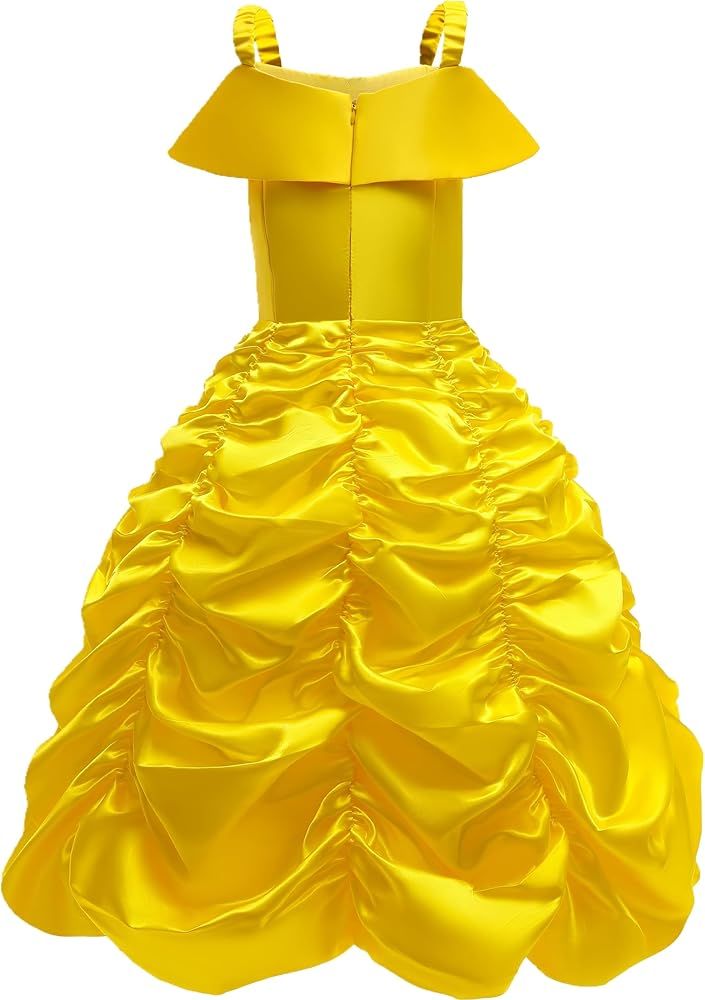 - فستان الأميرة زي بيل لحفلات أعياد الميلاد بدون أكتاف للفتيات 3T 4T(110سم، E39)