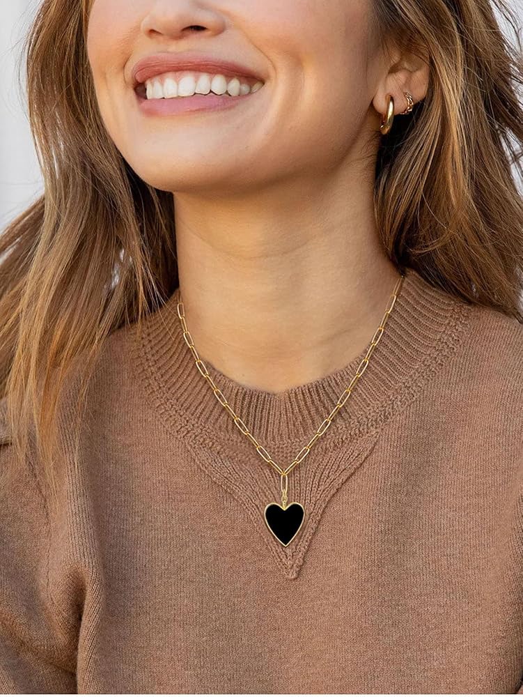 💜 جودة عالية 💜: شكل قلب جميل مع مينا لامعة ولامعة وناعمة. القلادة مطلية بالذهب عيار 18 قيراط، صحية ولا تسبب الحساسية ومريحة في الارتداء.