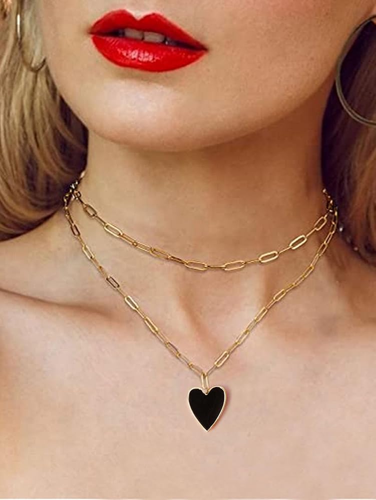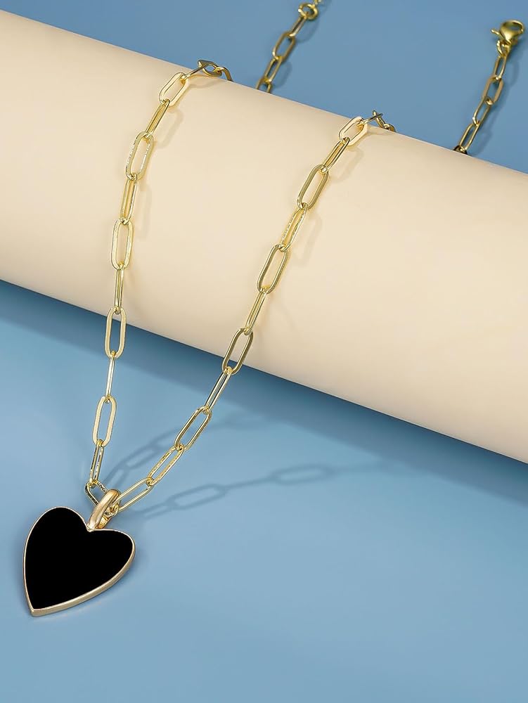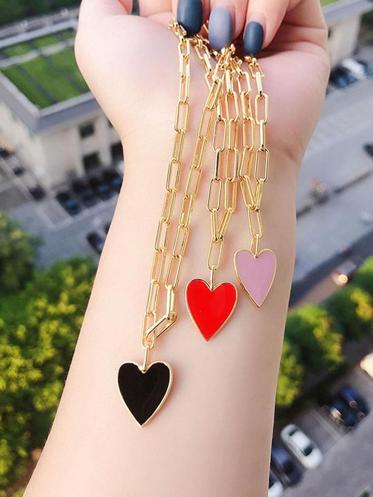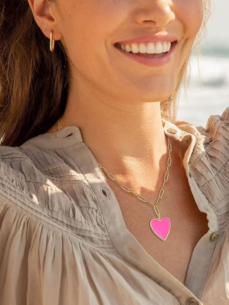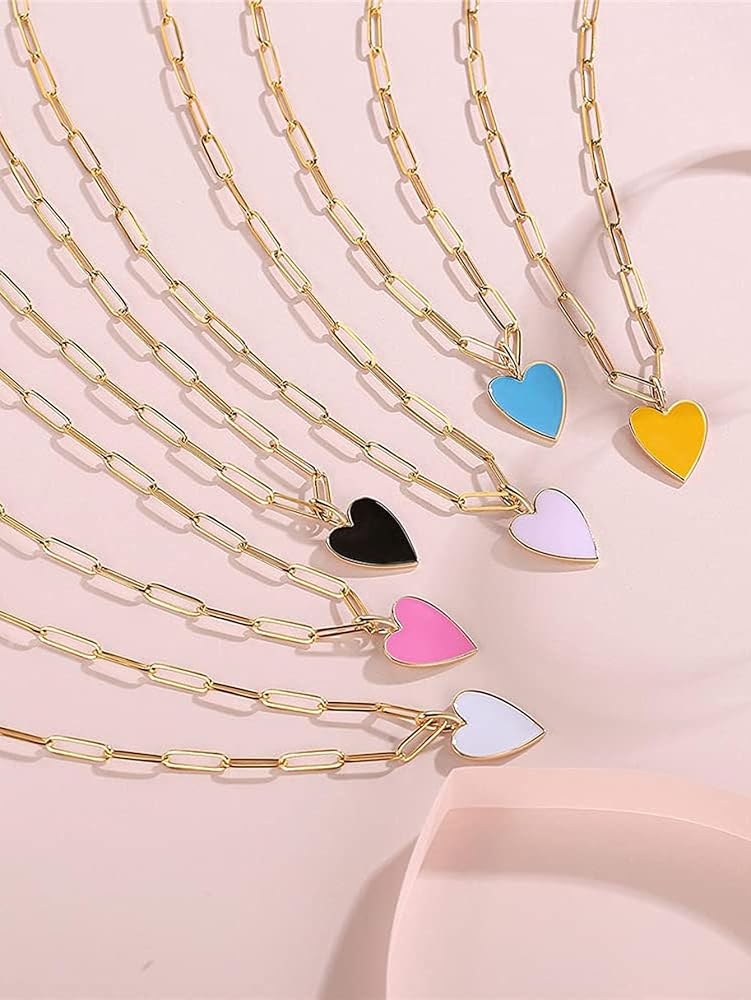 💜 قلادة Preppy 💜: قلادة عصرية على شكل سلسلة مشبك ورق مع قلادة على شكل قلب من المينا الوردي، تتناسب مع أي ملابس للنساء أو الفتيات. يمكنهم ارتداء قلادة القلب هذه يوميًا أو في المناسبات المهمة.