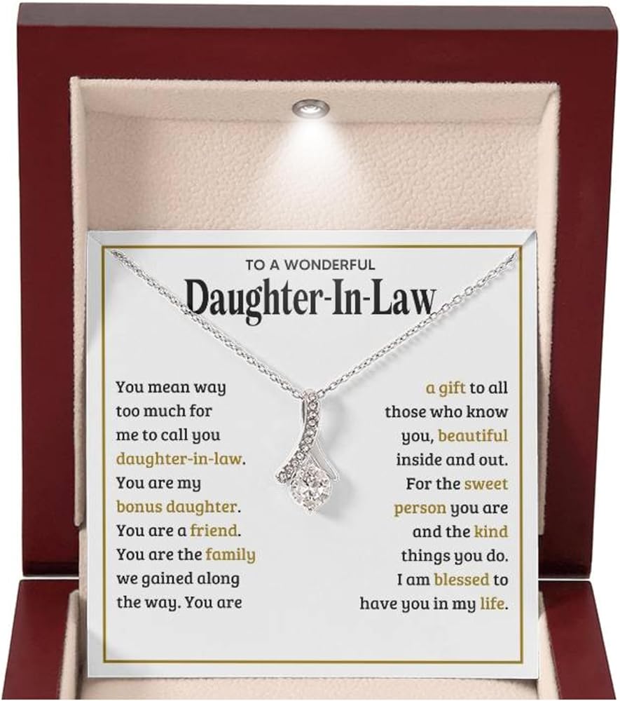 Imagine her reaction receiving this beautiful Love Knot Necklace. Representing an unbreakable bond between two souls, this piece features a beautiful pendant embellished with premium cubic zirconia crystals. Surprise your loved one with this gorgeous gift today! 14k white gold over stainless steel or 18k yellow gold over stainless steel 6mm round cut cubic zirconia stone Pendant dimensions: 0.6" (15.7mm) height / 0.23" (6mm) width Adjustable chain length: 18" - 22" (45.72cm - 55.88cm) Lobster clasp attachment Your piece is lovingly packaged in a complimentary soft touch box for easy gifting. Elevate your presentation by upgrading to the mahogany style luxury box, which features a brilliant LED spotlight.