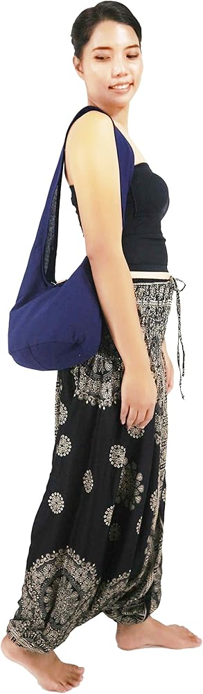 100% Cotton Hippie Sling Crossbody Bag Purse, a versatile and stylish hobo carryall made of durable but lightweight cotton fabric.