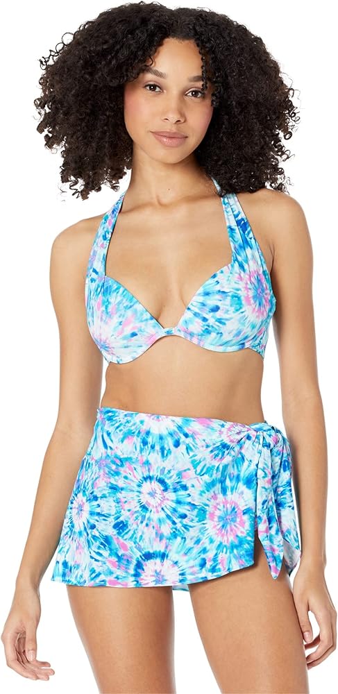 Be bold and beautiful as you flaunt your natural assets donning the COCO REEF All Over Tie-Dye Cameo Halter Bikini Top. Alluring halter V-neckline. Removable, molded cups with underwire. Adjustable tie detailing on the back neck. Hook-and-eye closure with conceal and cover slide on the back. Allover tie-dye print. 90% nylon, 10% spandex. Hand wash cold, line dry.