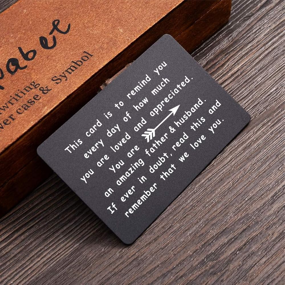 محفظة للزوج، بطاقة إدخال من الزوجة، محفظة معدنية منقوشة، بطاقة عيد ميلاد للزوج (الأب والزوج)