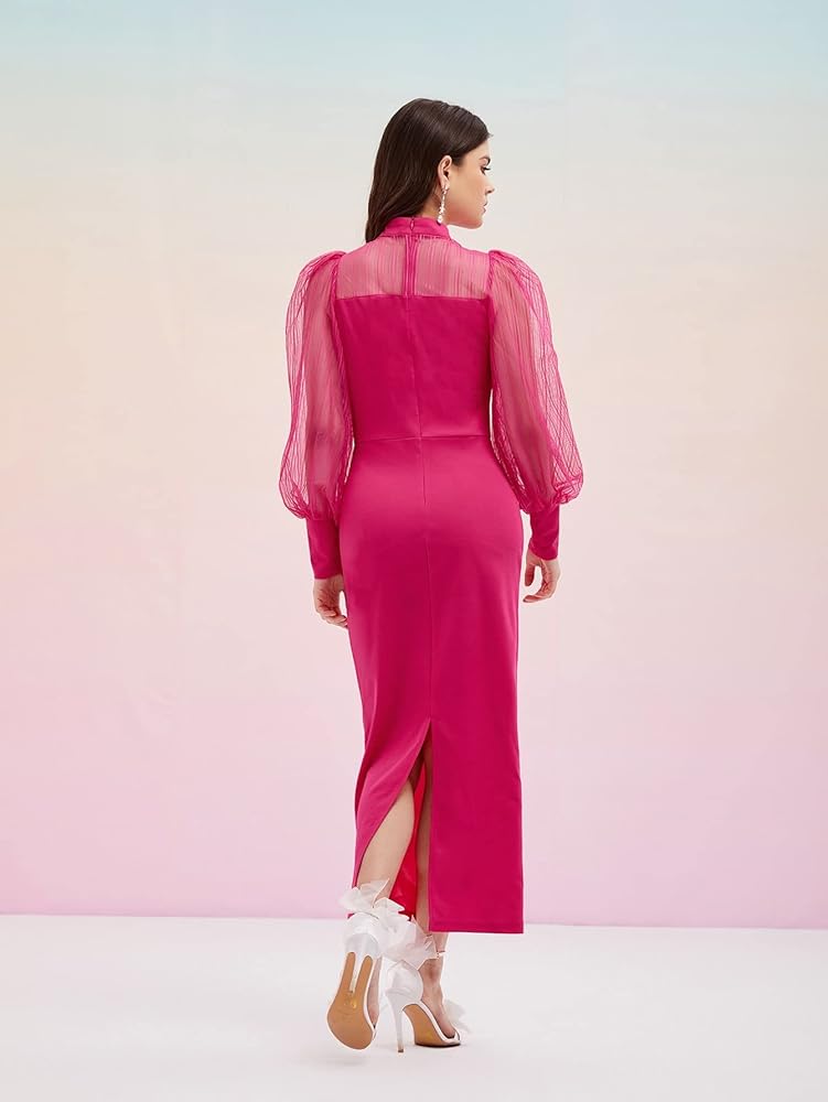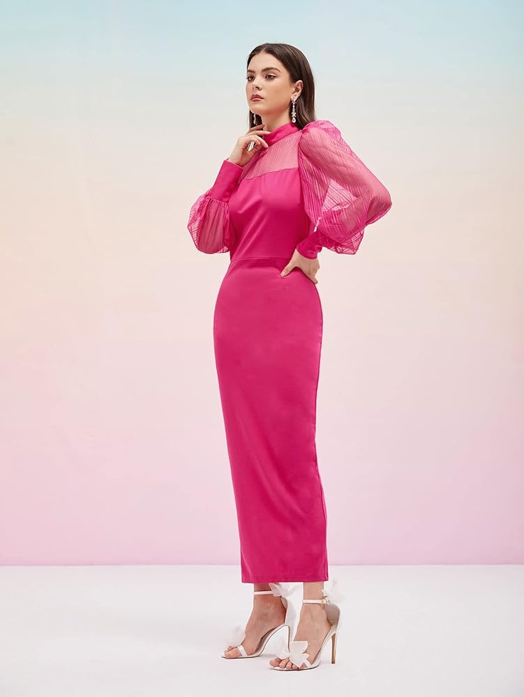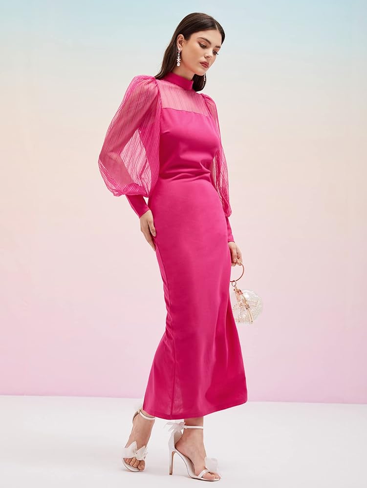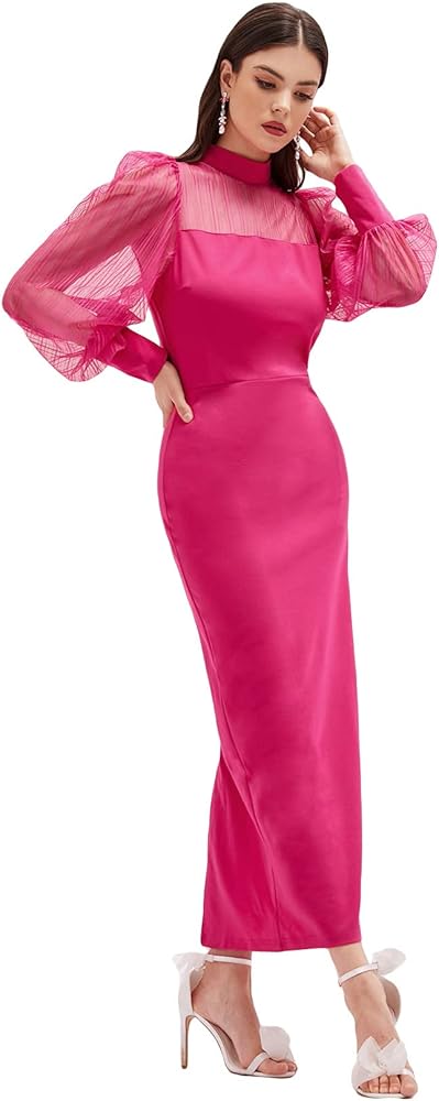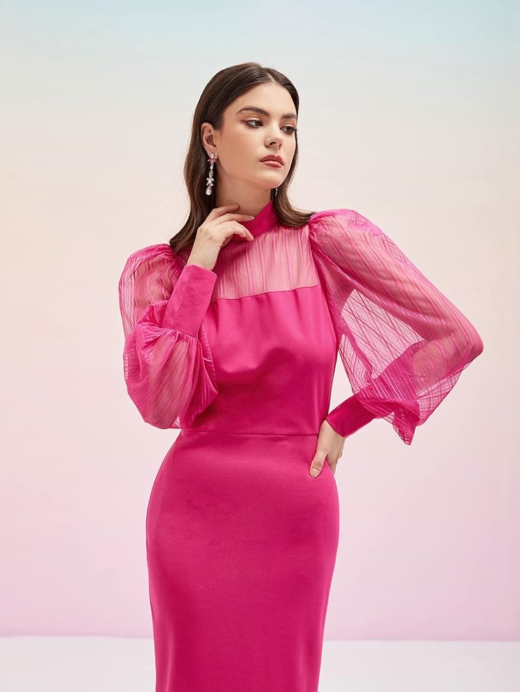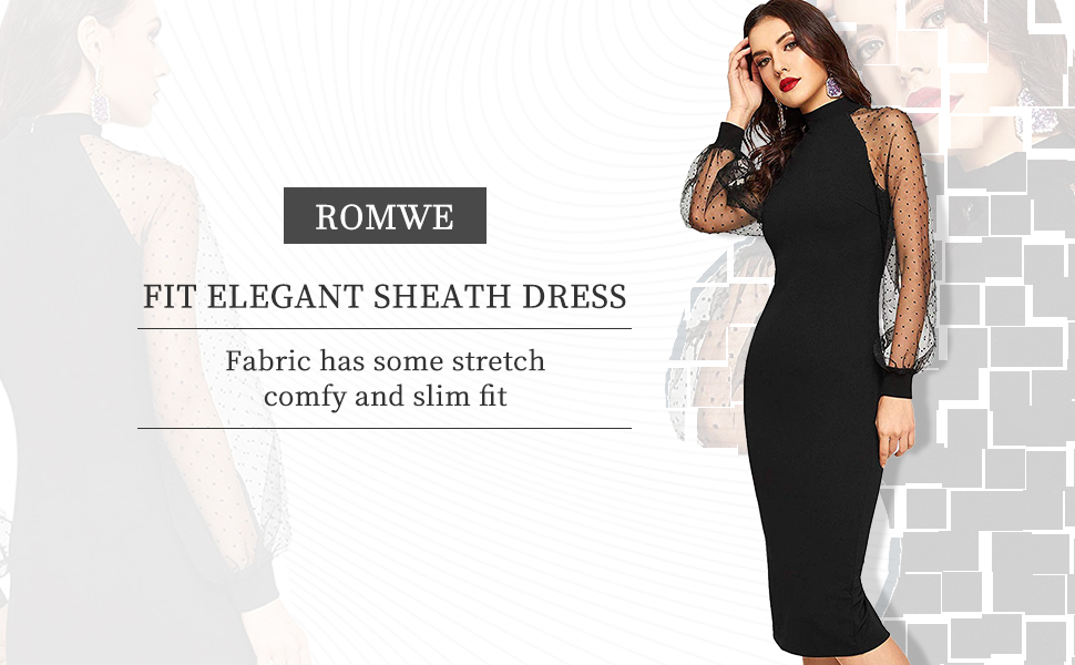 فستان Romwe نسائي برقبة وهمية وأكمام شبكية طويلة وسحاب خلفي