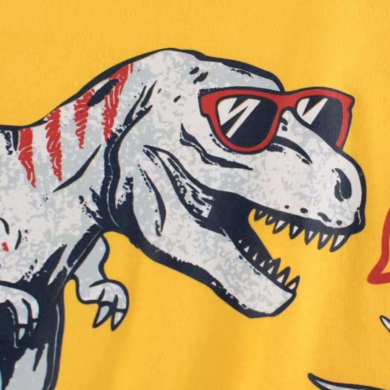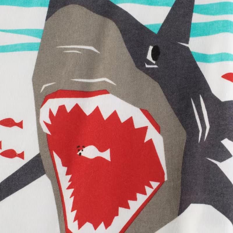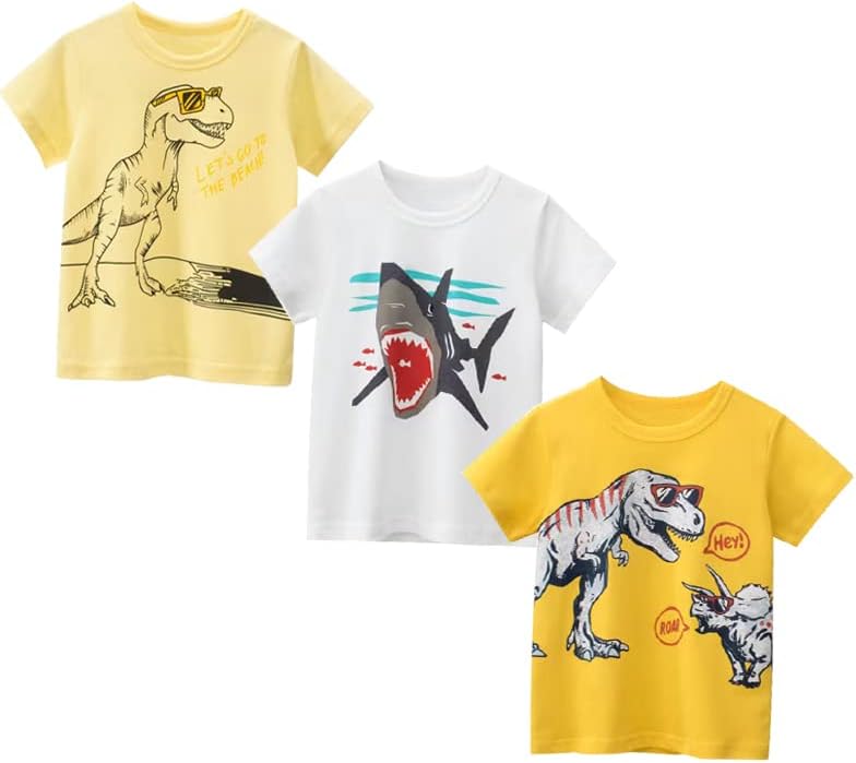 تتم طباعة هذه القمصان الرائعة برسومات مختلفة: الديناصورات وأسماك القرش. تي شيرت الأطفال هذا مصنوع من قطن عالي الجودة، ناعم ومسامي ومريح في الارتداء.
