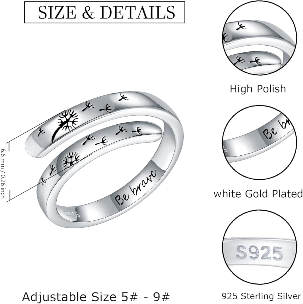 تأتي خواتم الهندباء هذه المصنوعة من الفضة الإسترلينية القابلة للتعديل مع صندوق هدايا أنيق. هدية مثالية للأم والابنة والجدة والأخوات وأفضل صديق والأم والزوجة وابنة الأخوات والأحفاد والبنات والسيدات والصديقات والحبيبات. يمكن استخدامها في الذكرى السنوية وعيد الأم وهدايا عيد الميلاد وهدايا الزفاف والهدايا الملهمة وعيد الشكر أو غيرها من المناسبات الخاصة. مناسب لأي مناسبة، ويسهل تنسيقه مع أي ملابس.