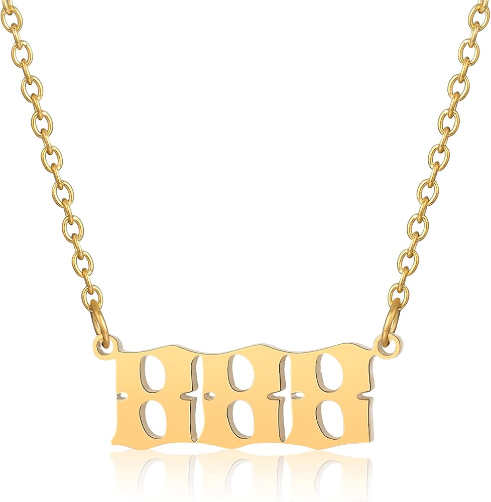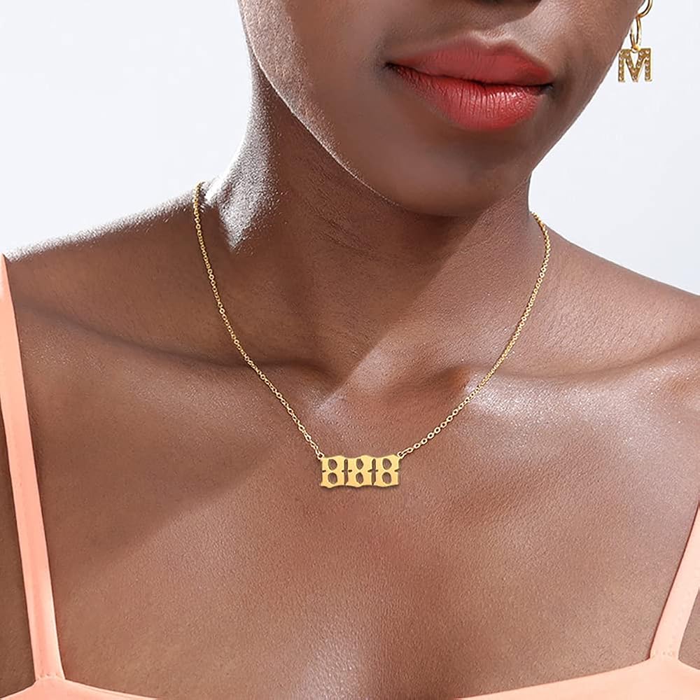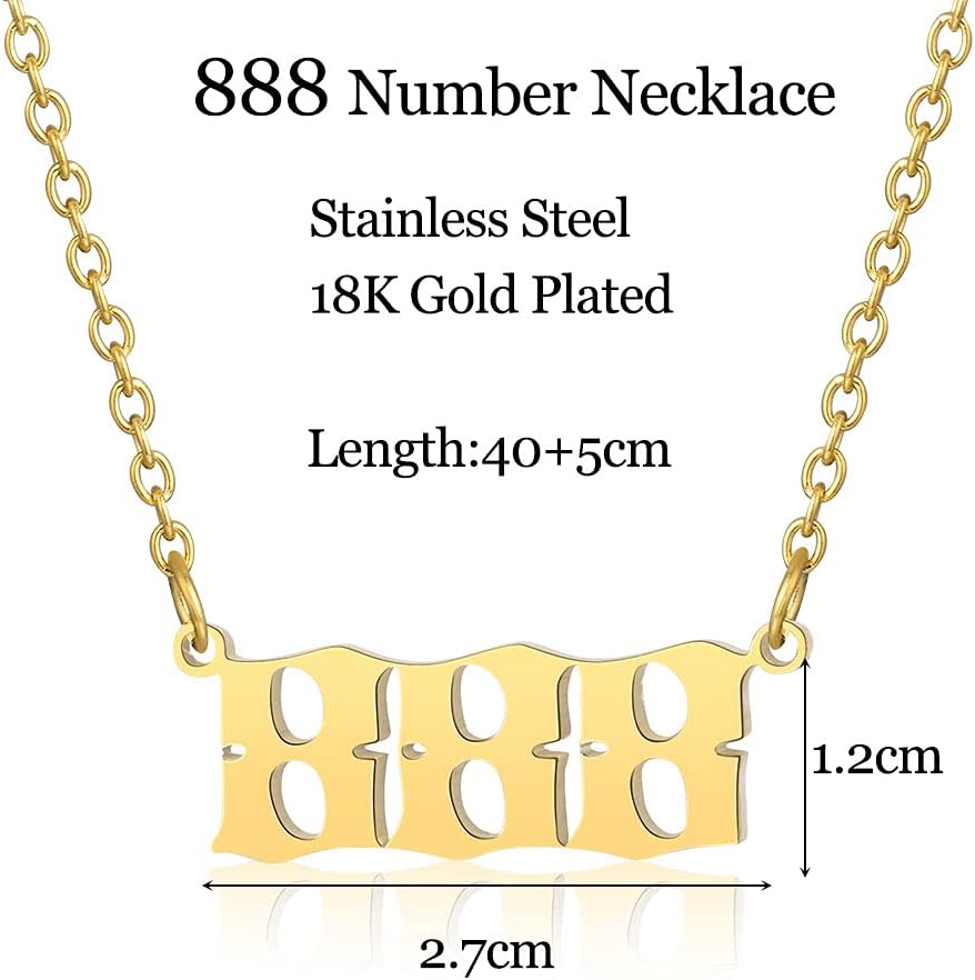 ♥ 【الخامة: قلادة برقم الملاك 888 للنساء، مصنوعة أخلاقيًا من مواد مقاومة للتشوه. الفولاذ المقاوم للصدأ الفاخر مع طلاء ذهب حقيقي عيار 18 قيراط. هذه القلائد الذهبية خالية من النيكل والرصاص وصديقة للبشرة تمامًا، ولا تفقد بريقها ولا تسبب الحساسية.