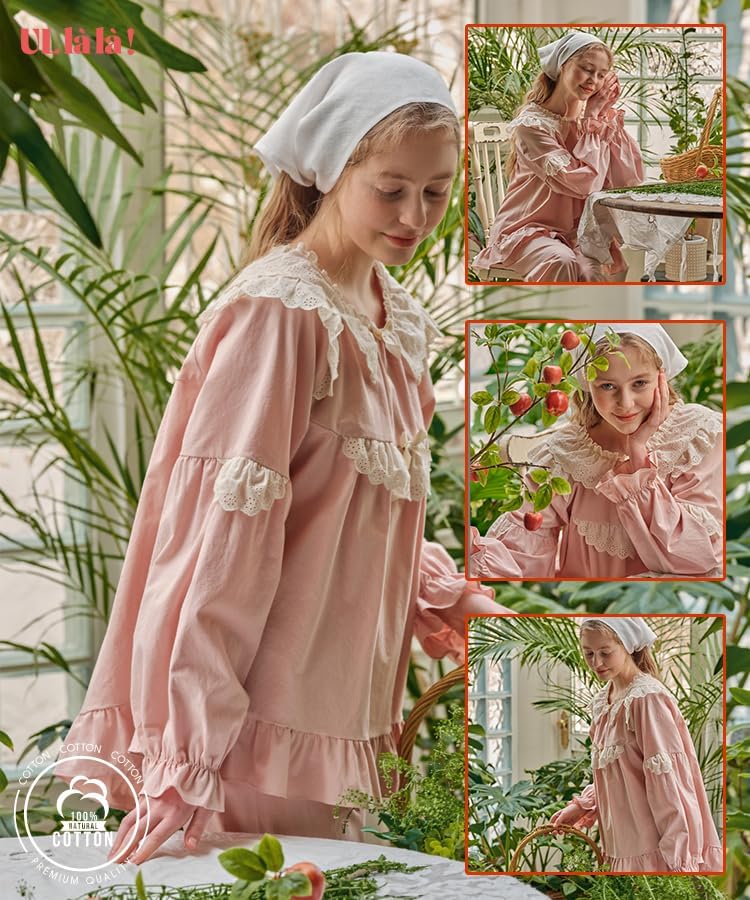 التصميم والمميزات: هذه البيجامات المكونة من قطعتين بألوان مريحة وجميلة ودانتيل بلون كريمي. يستخدم الدانتيل مع الزهور الجميلة على أجزاء مختلفة مثل الرقبة والأكمام لخلق مزاج جميل، في حين أن النسيج الناعم الملون يجعل الدانتيل لا يشعر بالإفراط.