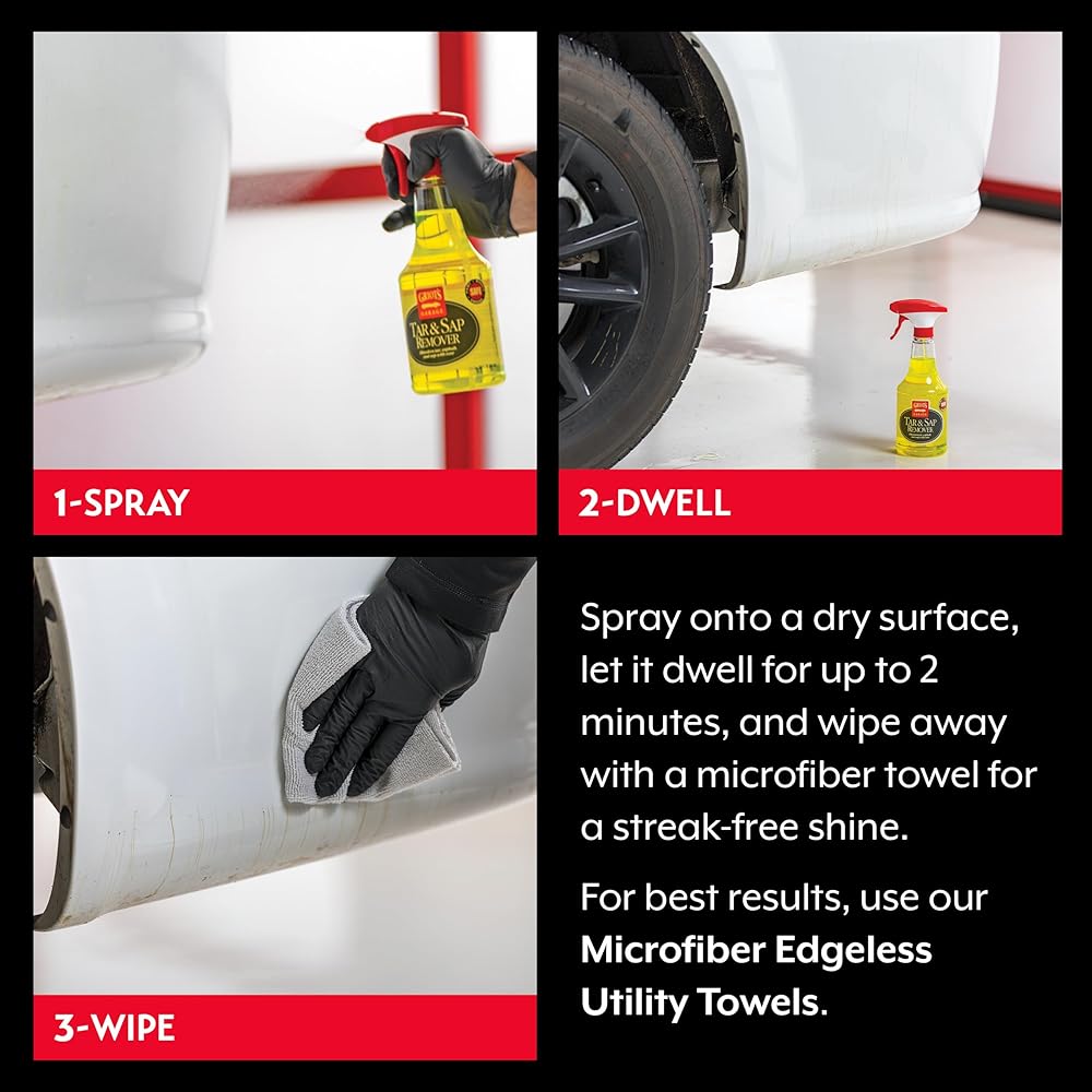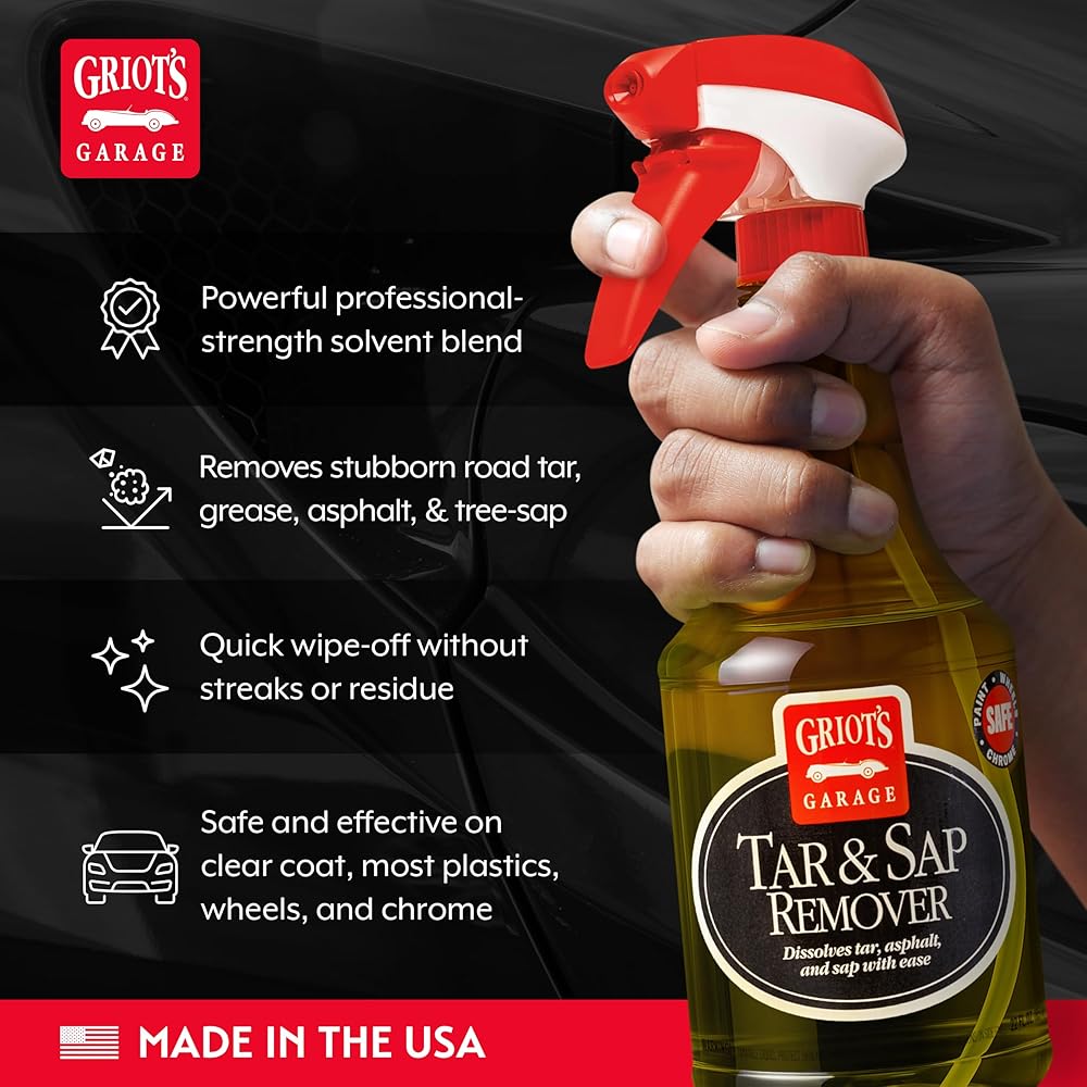 مزيل القطران والعصارة هو مزيج قوي احترافي من الليمونين والمذيبات والمواد الخافضة للتوتر السطحي المركبة لتنعيم وإزالة قطران الطريق العنيد والشحوم والأسفلت ونسغ الأشجار على جميع أسطح السيارات الخارجية. مناسبة للألواح الهزازة وآبار العجلات والعجلات والرفارف والطلاء والزجاج والبلاستيك وحواف الكروم. ببساطة قم بالرش على سطح جاف، واتركه يسكن ثم امسحيه. يعمل مزيل القطران والنسغ على تنعيم وإذابة الرواسب الصعبة من الملوثات الزيتية والعضوية بسرعة، مما يجعل المسح سريعًا بدون بقايا. آمن وفعال على الطلاء الشفاف ومعظم البلاستيك والكروم.