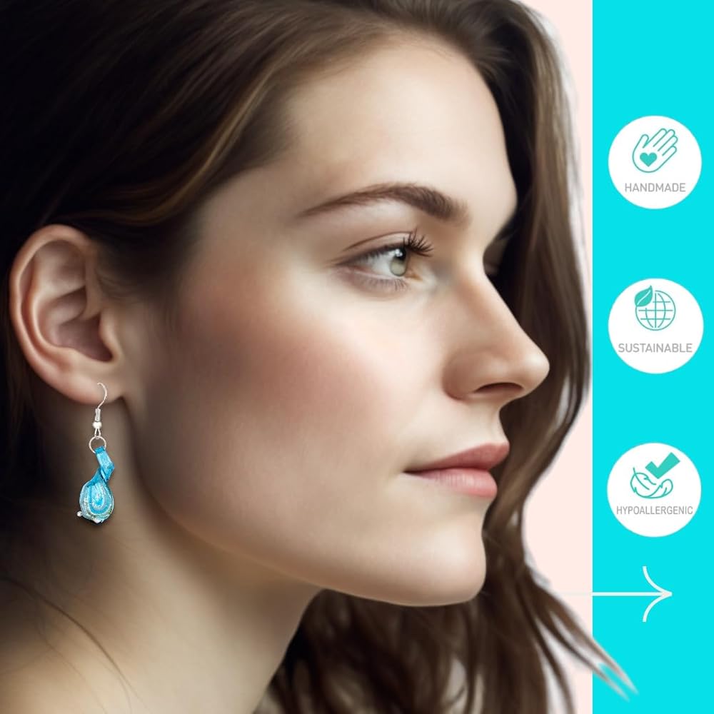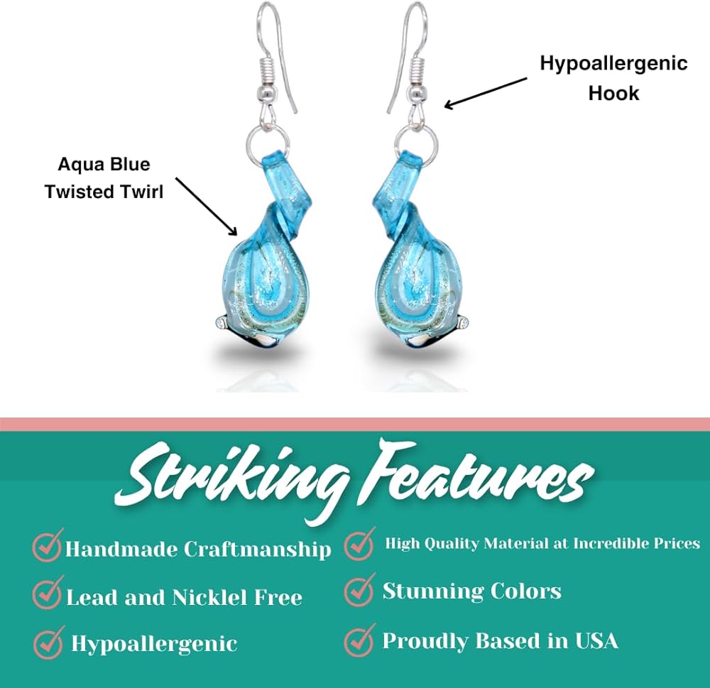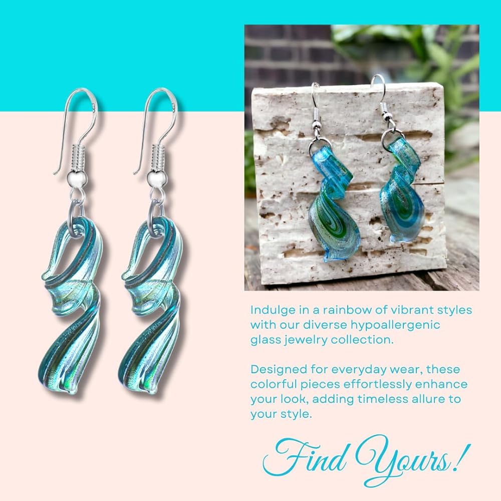 سوف تشكرنا بشرتك - جميع الأقراط الزجاجية الجميلة لدينا متوافقة مع الرصاص والنيكل مع جميع متطلبات الولايات المتحدة والمعايير الدولية. هذه الأقراط المتدلية المصنوعة من الزجاج الملتوي لا تسبب الحساسية وآمنة على البشرة. على الرحب والسعة!