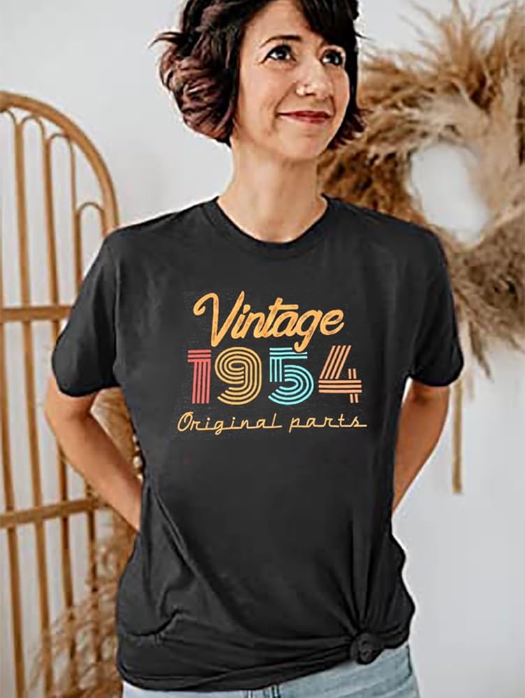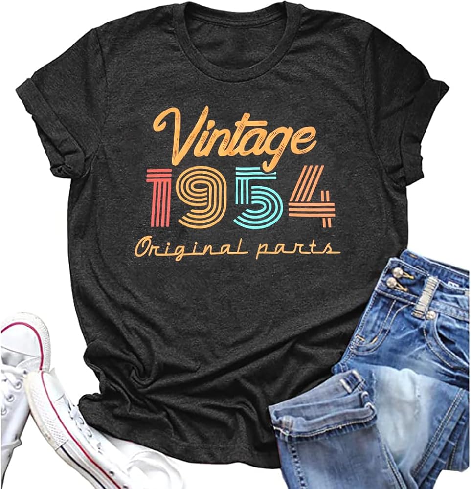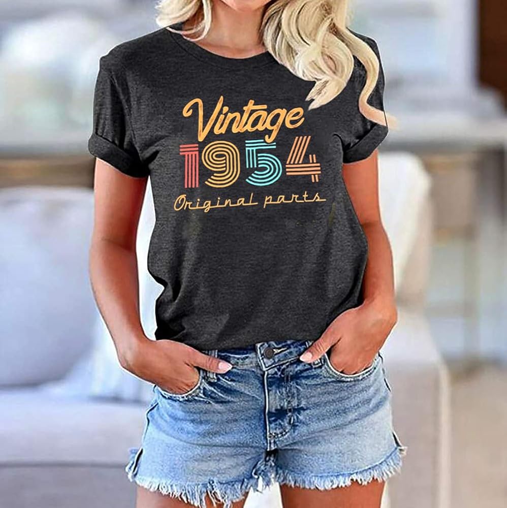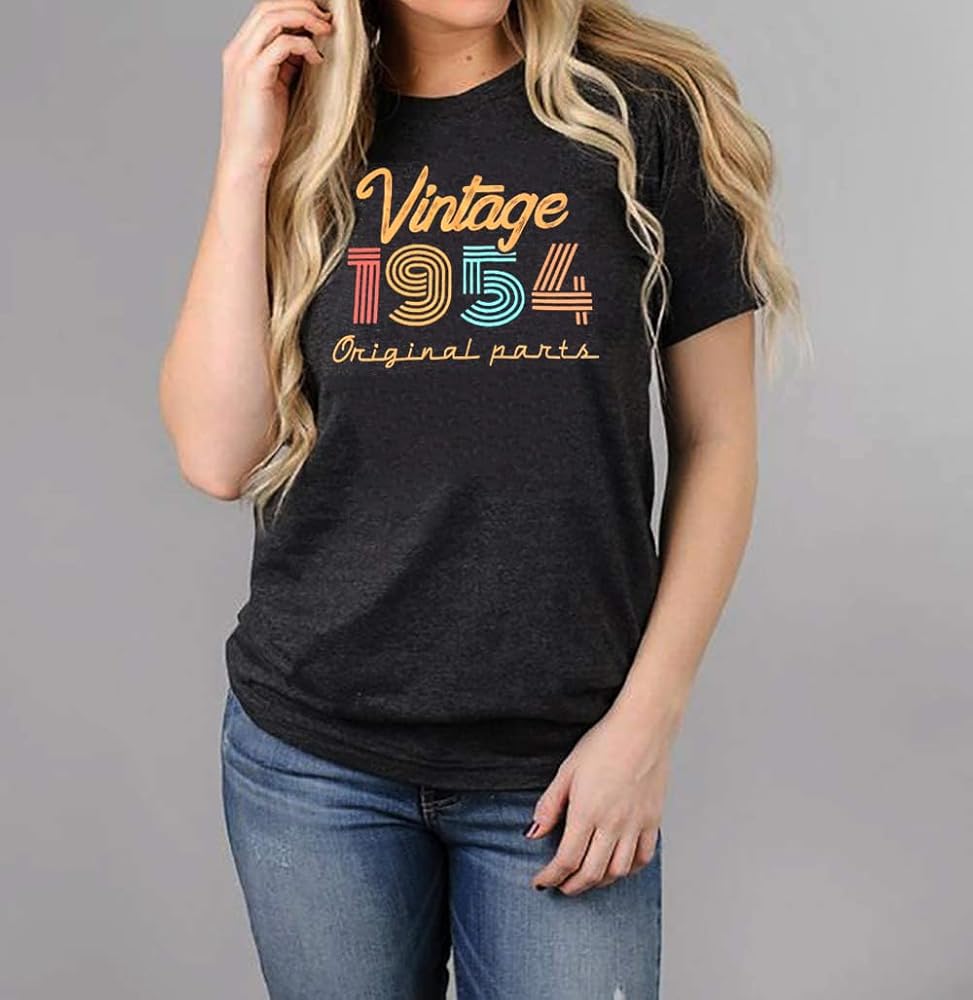 Womens 70th Birthday T-Shirts Vintage 1954 Shirts 70 Birthday Tshirt Casual Birthday Gifts Short Sleeves Tees Tops
